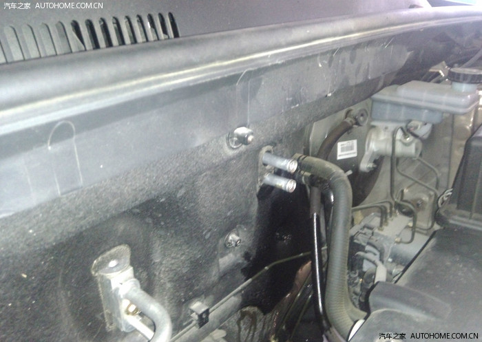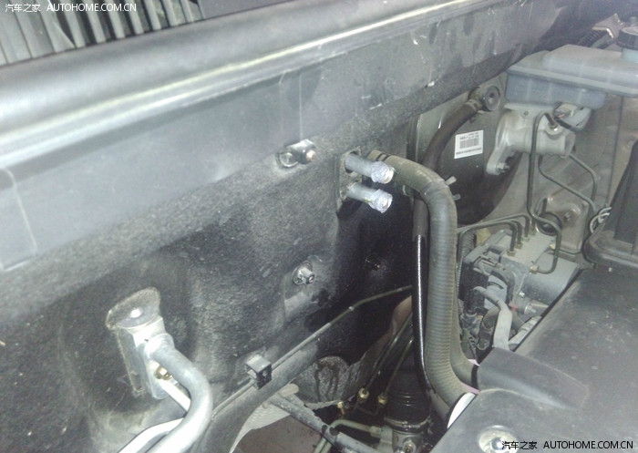但是坑爹的情况出现了,如图红色圈出来的区域,这两条水管是进了驾驶室的,尽管关闭了暖风水箱阀门,但是