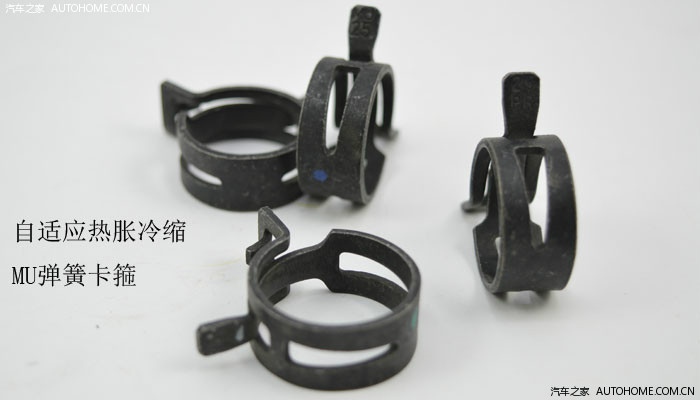 这种卡箍,不带热胀冷缩功能,不建议单独使用。大家可以看到,途中原厂水管,用的就是热胀冷缩型卡箍。