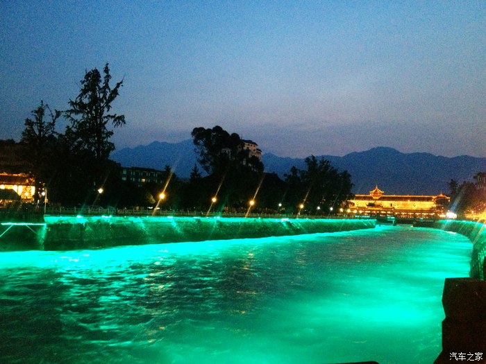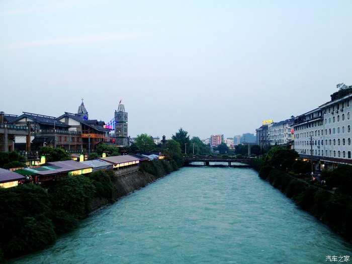 由于都江堰市的青城大桥在施工,只好跟着导航绕行至南边外江大桥进城,在导航的带领下,终于找到了
