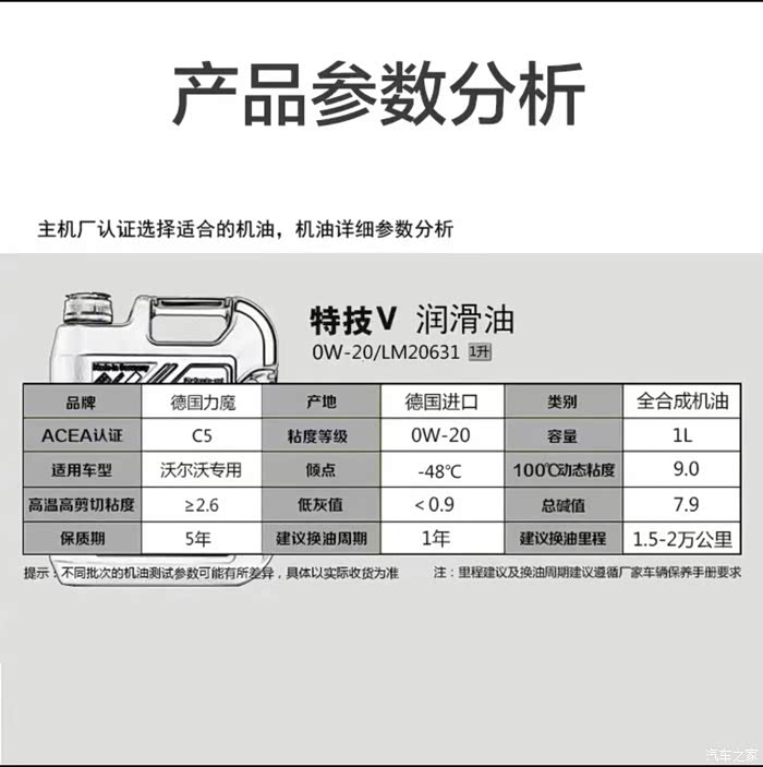他推荐的0w20力魔特技V,很多老沃尔沃车主都用过,我早在五年前刚买车的时候就研究过它,hths值也仅为大于等于2.6,并没有达到它所说的大于2.75。
