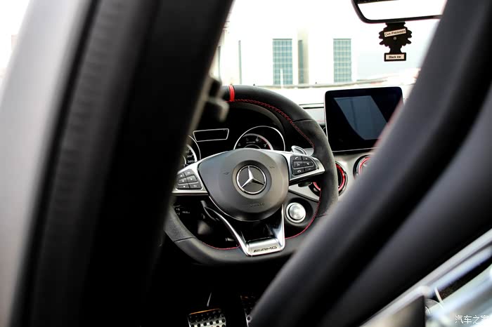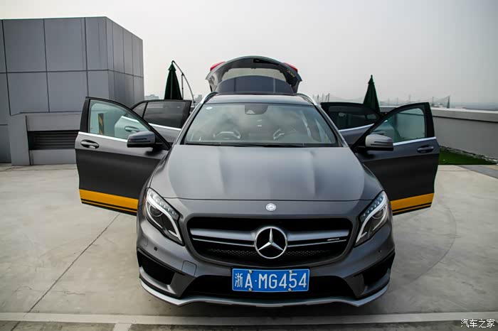 !从小就喜欢汽车,从学校毕业上班到现在算上这辆GLA45也买了4辆车子了,第一辆09年最早进口的两箱MAZDA3 2.0的(改的有点多,最后给找了个好归宿,卖了一个马自达忠实粉丝,现在偶尔在路上还能见到它),第二辆是12年买的末代英菲尼迪G37(还在勤勤恳恳服役中,从没掉过链子),第三辆是14年买的MINI R56的1.6FUN的自吸(不得不说英国人做车真没德国人和日本人严谨,一直大毛病没有小毛病不断,谁让老婆大人喜欢呢。。。)这辆GLA45是到了AMG中心渐渐被AMG洗脑后义无反顾买的,有的人会说50多万干嘛买个GLA?可能是内心真的喜欢AMG,被一人一机吸引了。。。每次带客户试驾,慢慢的就感觉自己也应该有一台AMG。之前也有考虑过保时捷MACAN,最终经过前后对比还是选择了GLA45,2T的MACAM也就是买个保时捷的壳子(毕竟在AMG中心上班,今后还是很方便的,你们懂得。。。
