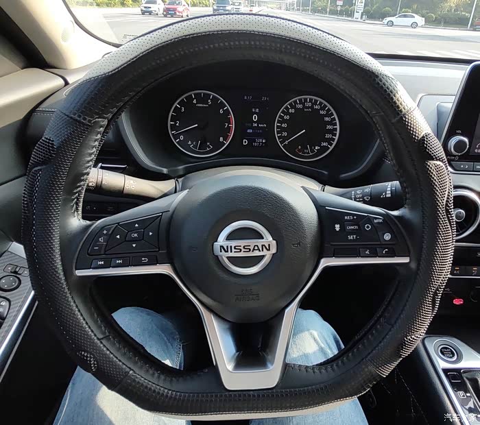 我一共买了两个方向盘套,一个冬天用,一个其他季节用,颜色都跟内饰比较搭配。还有轩逸的多功能方向盘上面原本右边的按键是没有的,就是空空如也,看起来很低配!后来我从网上花了十几块钱买了一个按键贴,装上后左右就对称和美观很多了!最后关于车载手机支架,我买的是卡扣版,正好就能卡在圆形空调出风口的位置,没放在左边是因为怕挡上双闪的按键!