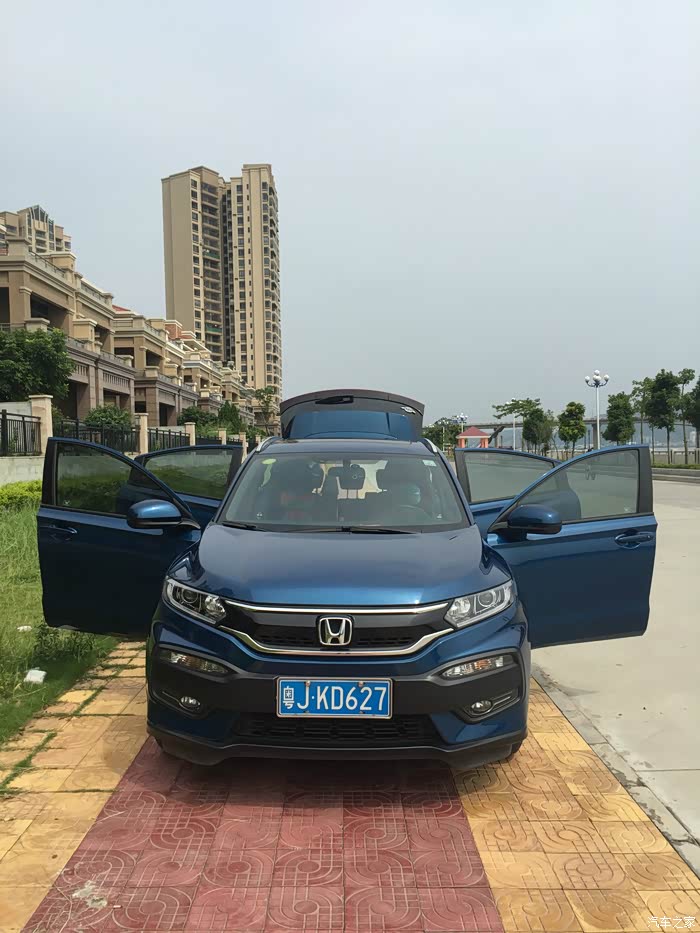 4、空间:这个真的没得说,驾驶座位对于1米6几的我来说是十分足够,空间设计利用率非常高。在同级别的车来说,x-rv空间相对来说比较大,后座比较宽敞。后排的座椅还能放下来休息,这点感觉很不错,旅行的时候应该用得着。还有就是后备箱,很满意,上次出游,放了三个行李箱,还有一些杂物,还能放下其他东西。这点给1分。
