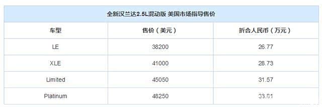 美版混动售价比汽油版同配置高1400美金左右,大概9000人民币。国内汉兰达的售价见图。