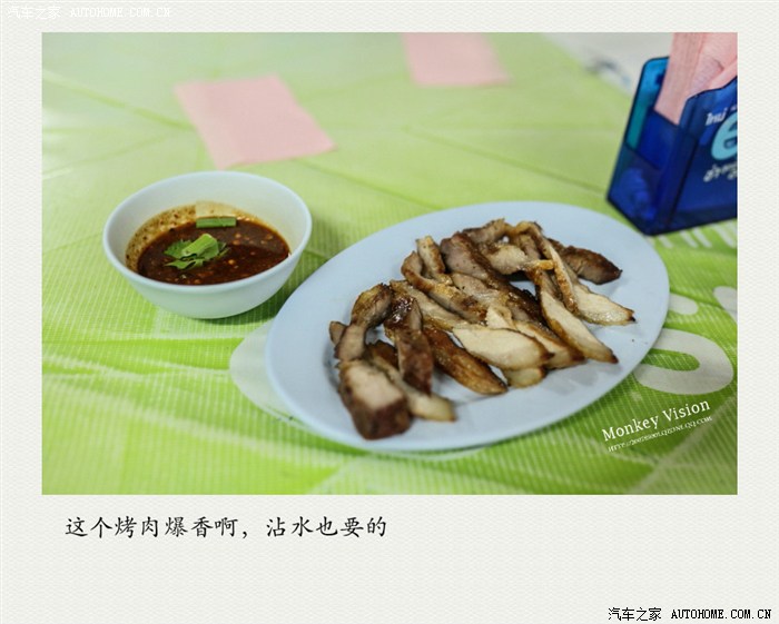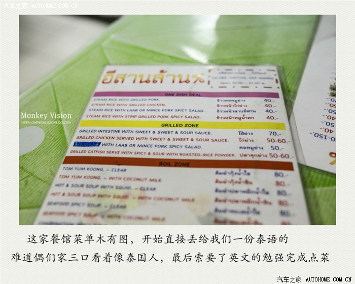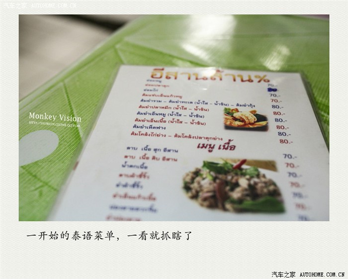 一般大学附近的餐馆经济又爽口,所以临走前特地在清迈大学正门口的餐馆甩了顿饭。饭馆的妹纸直接丢给我们泰文的菜单,难道偶们家三个人这几天晒得肤色深邃很像泰国人民么?立马更换英文菜单,这家菜单木有配图,比较考验英文功力,偶们估摸着这份菜单应该是泰国人自己翻译的,太拗口了,最后翻出手机词典帮忙才模糊的完成点菜。虽然点菜磕碜点,上的菜还是比较还吃呢,特别是烤肉,味道相当不错,推荐推荐。