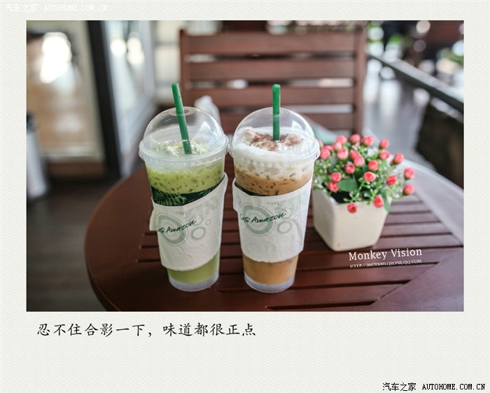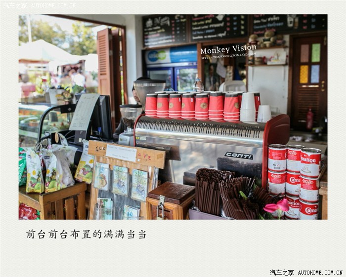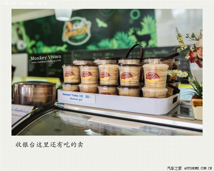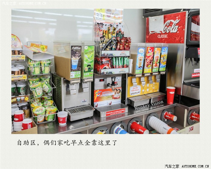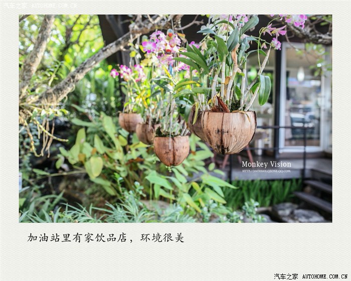 出发出发,抖擞起精神全家找了个加油站加油补给,顺便7-11吃早餐,小妹吃面包偶跟老婆甩泡面。吃完去WC,发现加油站里有家甜品店,好多泰国人进去买奶茶喝,偶们忍不住也摸进去了,甜品店装修依然很有爱,有水有树有花有鱼,恍惚来的是个景区不是加油站,最后点的两份奶茶也超级棒。