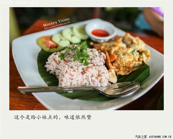 一天的赶路肚子巨饿,午饭不小心又发挥过头了,全家干掉四份炒饭两个菜外带两杯果汁,隔壁桌也是标准的泰国家庭两大一小,人家确实是一人一份饭就搞定了,嘿嘿,继续大振国威啊。