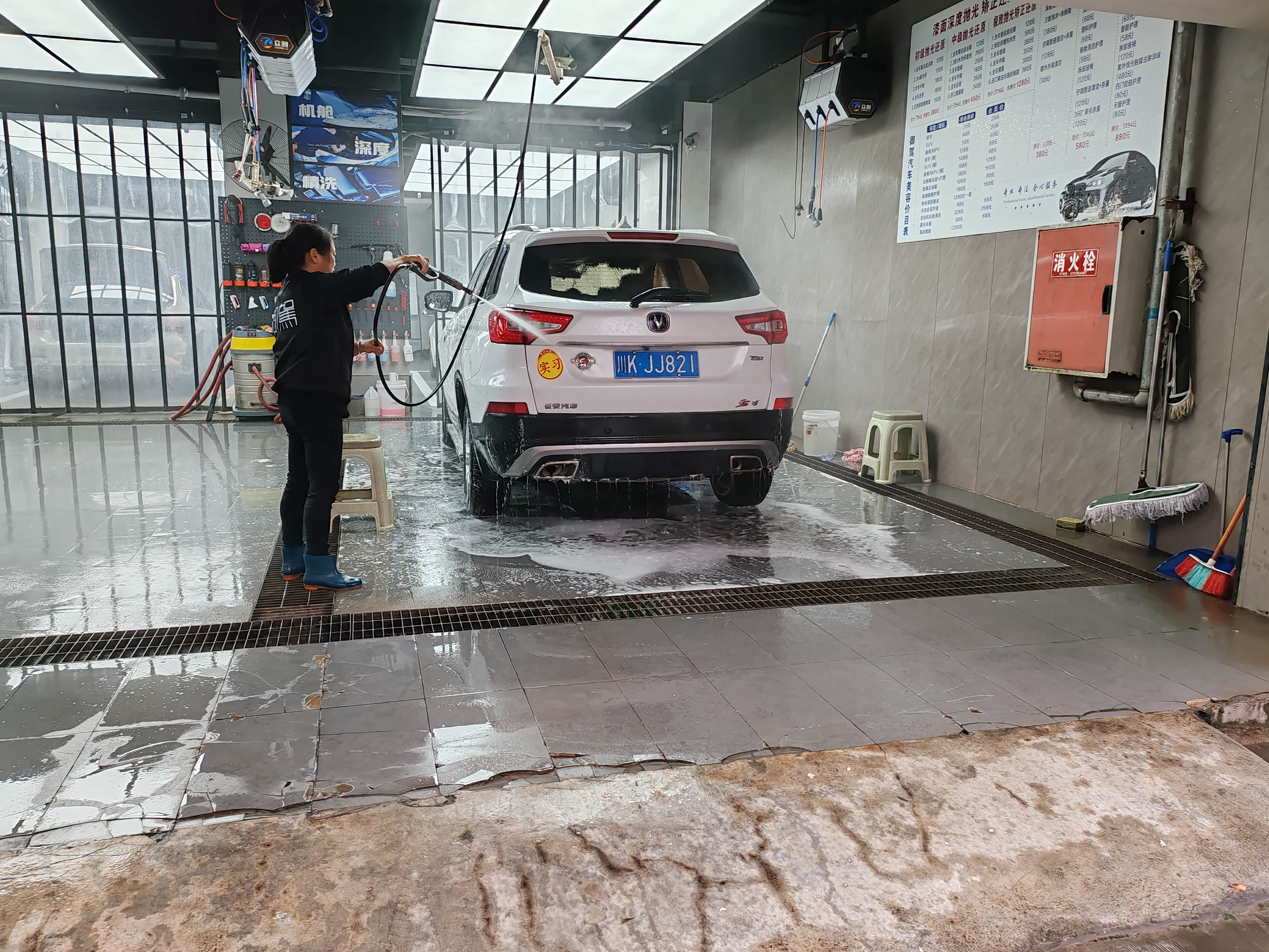 对于自己的爱车自己肯定还是要好好的养护起来的,比较爱美之心人皆有之,对于车辆的保养每个人有不同的看法,有的人觉得我平时对车辆的机油啊,机油滤芯这些进行更换就可以了,但是我个人觉得哈,对于汽车的美容这一块也是非常的重要,因为当你的车辆洗得干干净净,没事整得整整齐齐。以后你开车的时候心情都会变得更加的美丽,这样也有助于我们提升我们的价值体验让我们平时在使用的过程中,心情变得更加的美丽,让我们生活得到优质的提升,这也是我们对车的初衷,对不对,有的人喜欢自己在家里面洗洗自己的爱车,但是我这个人比较懒,正常情况下都是在专业的洗车店里面去洗,这样的话他们才会洗的比较干净,看一看这个洗车店还是非常的专业,对于车辆过户方位的细节都是写得非常的不错,下面我们就去详细的看一看他洗车的过程是怎么样的吧,也希望大家指正过程中的辅助支点,让我以后好注意车辆的使用,这样的话让我的车辆更好的为我服务,也让车辆的质保期变得更久