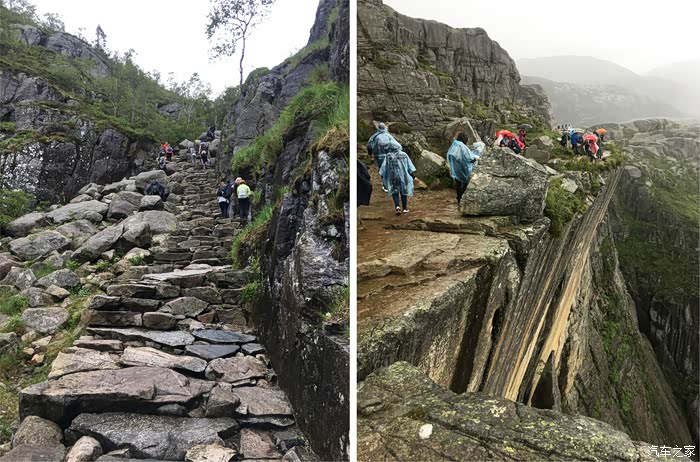 NO.2:布道石,是三块石头中最最easy的一个,往返6公里,只要3小时,来挪威的中国游客基本上都会去爬这块石头。然而天公不作美,连续下了两天雨,躲都躲不掉,我们只能冒着大雨去爬,无形中增加了难度。