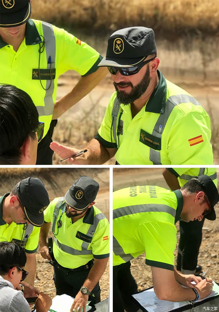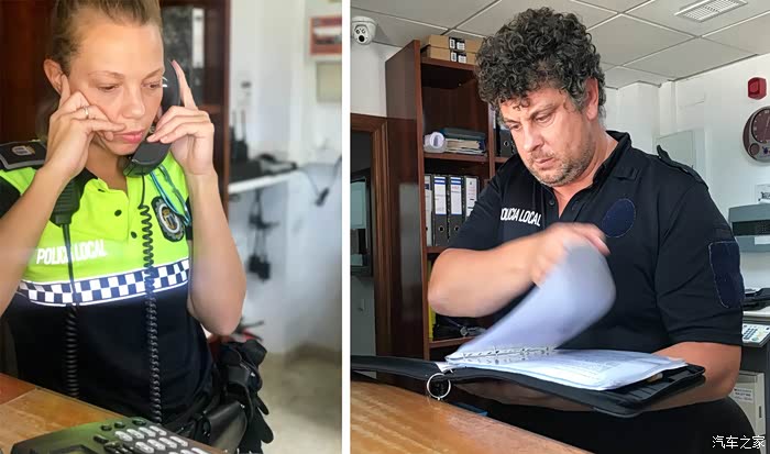 一早便跑去警局求助,又遇到一位超善良超可爱的警察蜀黍。大叔说西班牙语,和我一样只会一丁点儿英语,而这几个公司之间没有一条顺畅的联络通道,相互之间没有协作关系,需要我们一个一个去沟通,德国租车行几乎啥事不管,意大利、西班牙的办事效率都不高,经常处于等待状态,从上午8点多一直折腾到下午2点半,大叔要下班回家了也没有结论。直到3点半才接到意大利的电话,可是完全听不懂啊,然后,大叔又被我们叫到办公室,后来还请了会说德语的私人朋友一起来帮忙,一直到晚上9点,才落实了我们住酒店,房车拖到最近的城市去维修的方案。感动到哭了有没有?哈哈,这一整天的交流,我们早已成为朋友。