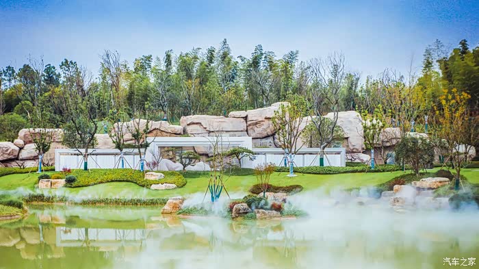 佛顶前苑作为通向佛顶寺、佛顶宫的重要通道,设置了天阙揽胜文化景墙、集贤桥、十牛图塑石假山、心铭墙、法融广场、心莲广场、停心湖、趣牛园以及晚红小径等十五处观景点。整体通过三个层次的景致,前景“蜓戏红莲水映天”、中景“雾起白虹飘玉带”和远景“寺宇山色有无中”,构成一幅静谧秀丽的山林水墨画卷,尽显牛首山“隐秀”的环境气质。