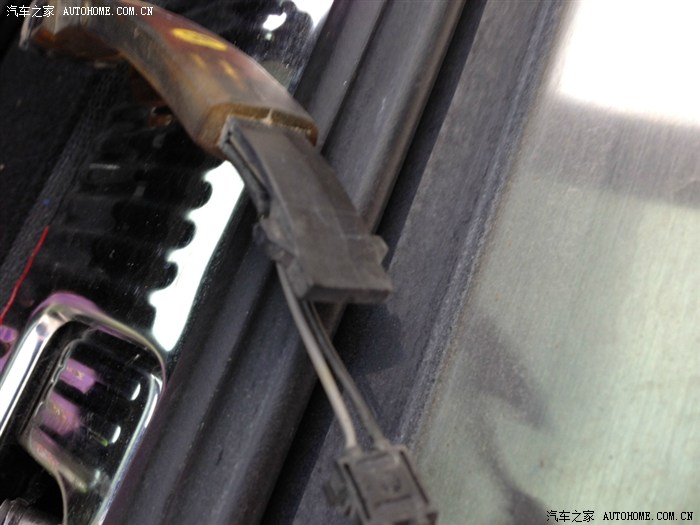 然后小心地把把手取下来,右边孔需要用手指伸进去掰,因为图片右边的勾勾着里面的拉锁,左边需要注意的垫在是左边孔的那个胶圈必须拿下来,否则把手拆不出来,拨开连接的电线,便可以拆出来,注意别让电线溜回去。拆下来是下图