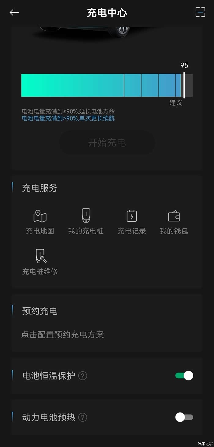 首先,电池保暖很重要。尽量停地下车库,别让爱车在外头挨冻。充电时,选温度高点的时候充,比如中午,这样电池状态好,充得也快。在家用桩充电时在APP里打开电池恒温保护,动力电池充完电后仍然能保温6小时,为车辆提供更好的续航保障。