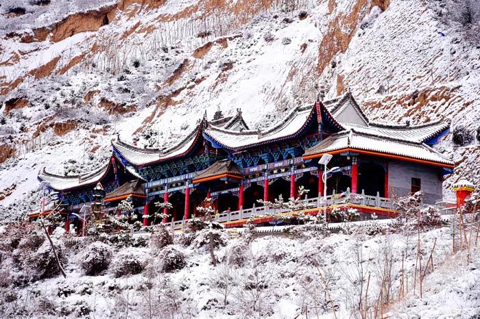 卧龙寺位于甘肃临洮县城西北方向,洮河西岸的的小洼山上。兴建于晚唐时期,已有千年历史,清光绪年间,陕甘总督左宗棠给寺赠石佛一尊并题对联,“***自转菩提海,净域长流功德泉”。卧龙寺历史悠久,近年由地方名豪捐资,翻修一新,千年古刹又现雄姿,保民安康,灵气尽显。入春春雪频频,本日三月五日,又见春雪喜降,我便冒雪前往,行摄卧龙寺,展现卧龙古刹雪中雄姿,以示敬拜!! 时光在眼前飞过,人在生活中找到自我,驾着索九奔忙,风风雨雨也阻挡不了我的脚步,我为之家,之家为国,国富之家強,生活更安乐,登山拜寺,景美人安乐!