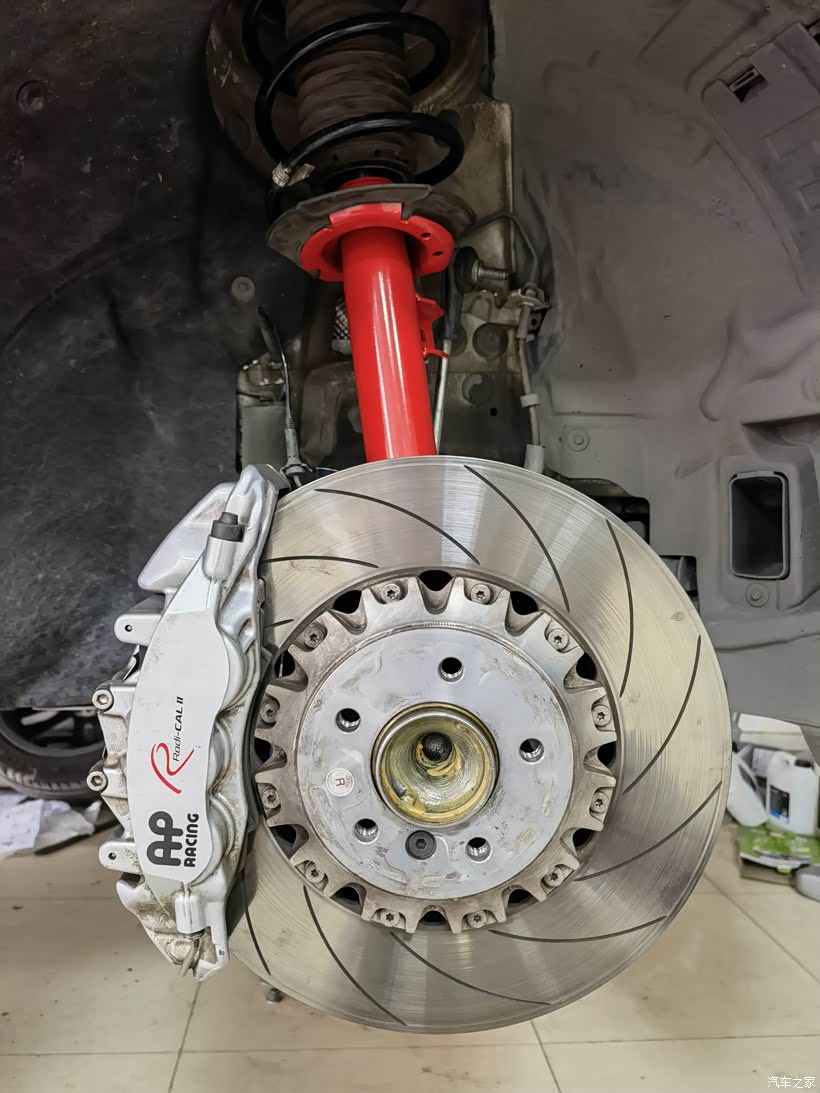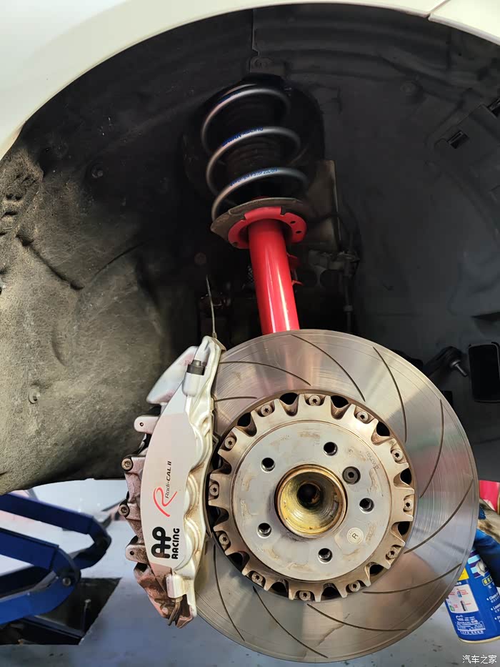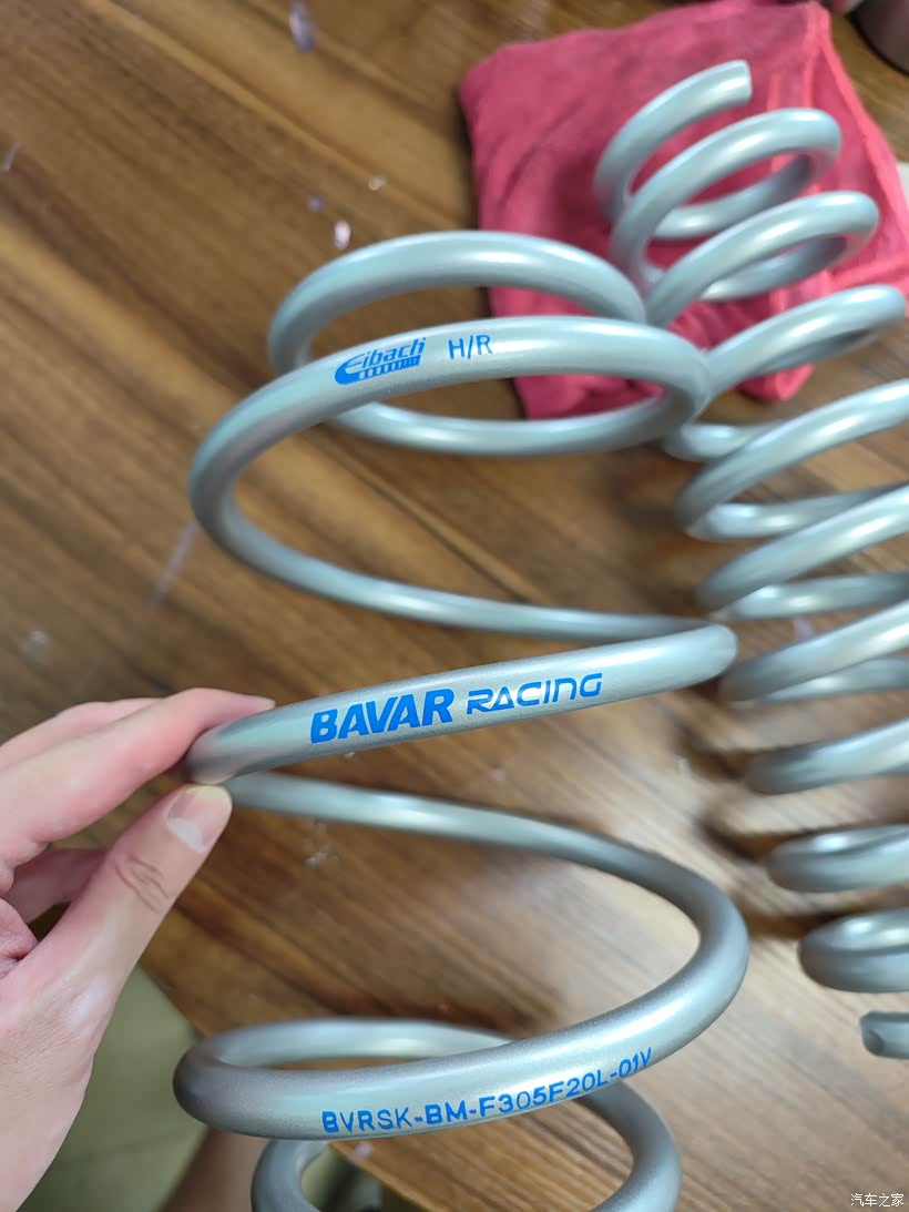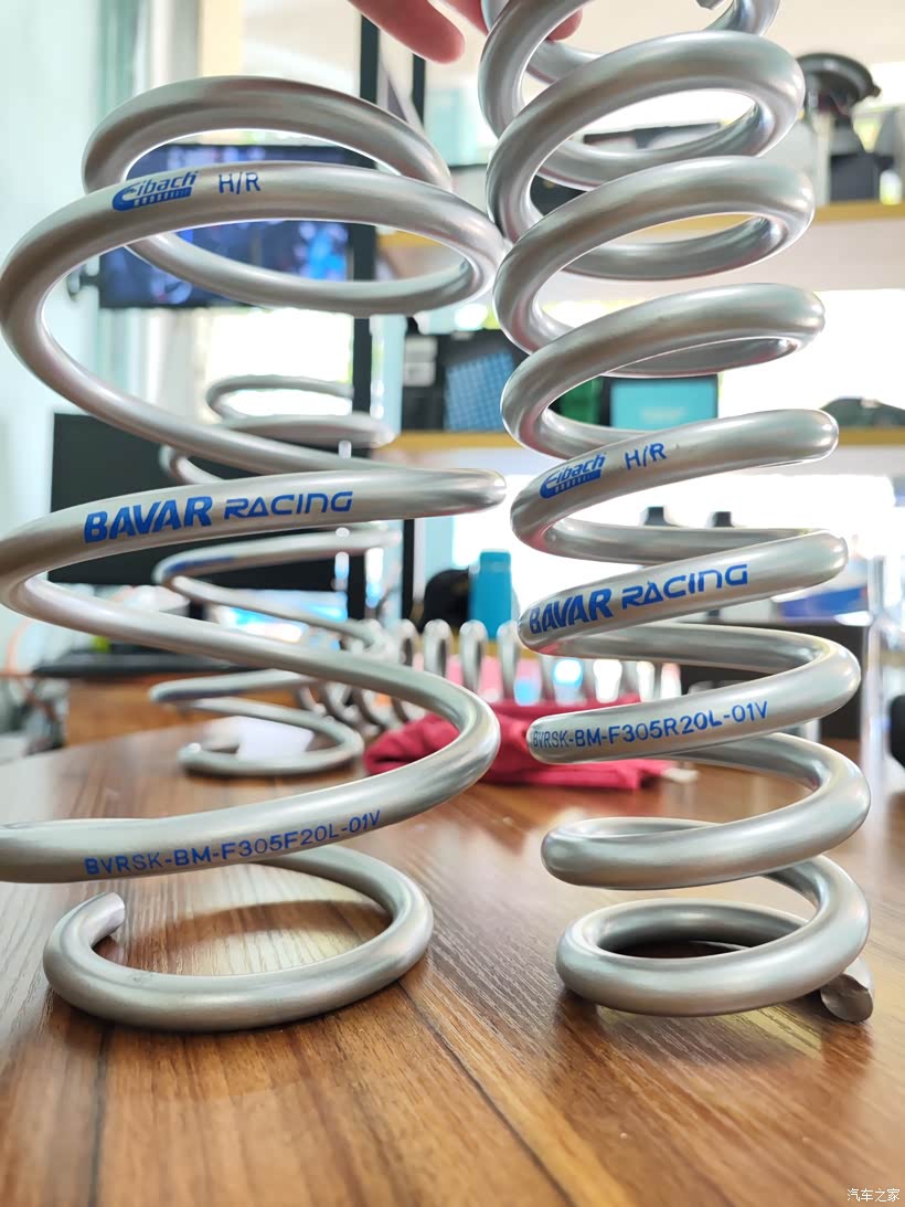 经过体验单独更换变色龙避震桶一段时间,忍不住上了配套的爱巴赫银簧。这套银簧用下来,高度比原厂低一指,现在是前2后1。硬度和爱巴赫黑簧相比没有那么硬,比原厂硬一点点。侧倾支撑有所加强,还是在可接受程度。操控更上了一个层次。