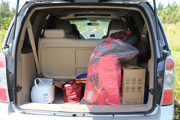 租GL8的一个主要原因是因为它的后备箱超大,我放了一个28寸、一个20寸旅行箱外,还放了N个双肩包、三个游泳圈三套救生衣,可以看到电饭锅和电磁炉我都带上了,可惜今次没找到卖海鲜的市场,不然肯定得煮上两顿。