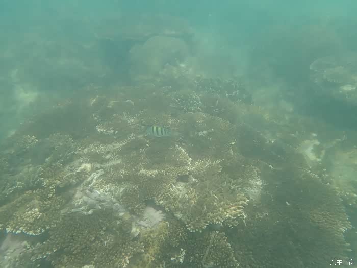 大概效果就是这样,蒙蒙的不是因为相机不够清,只是海水里掺杂着较多的沙子,能在国内浮潜拍到这效果我已经相当满意了。(千万不要把马代、帕劳那些潜水圣地的片子来比较)