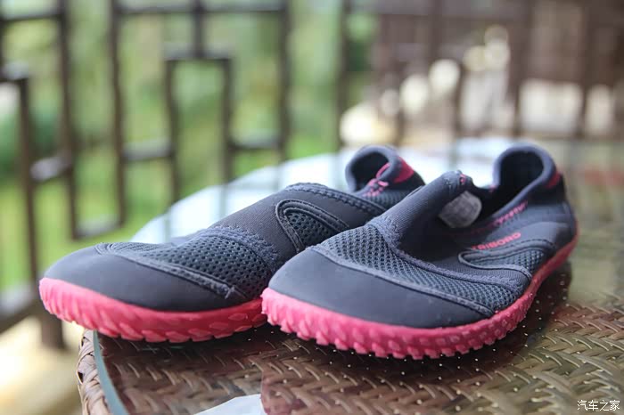 潜水鞋,其实这只是选择之一,也可以用浮潜袜、脚蹼代替,主要起保护作用,因为近岸的海滩上很多礁石和珊瑚,赤脚踩在上面会很痛。