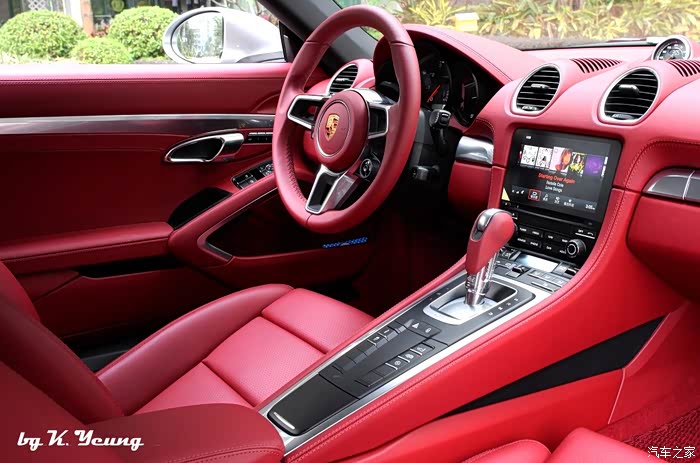又是红色。继2009年TT及2014年Masarati都是红色内饰后,今次 Cayman 亦是红内。不是故意的,但适合我的选择不多,原意属 Sport Tex 的混搭,可能是刚生产原因,暂不提供,可惜我无法选裝。