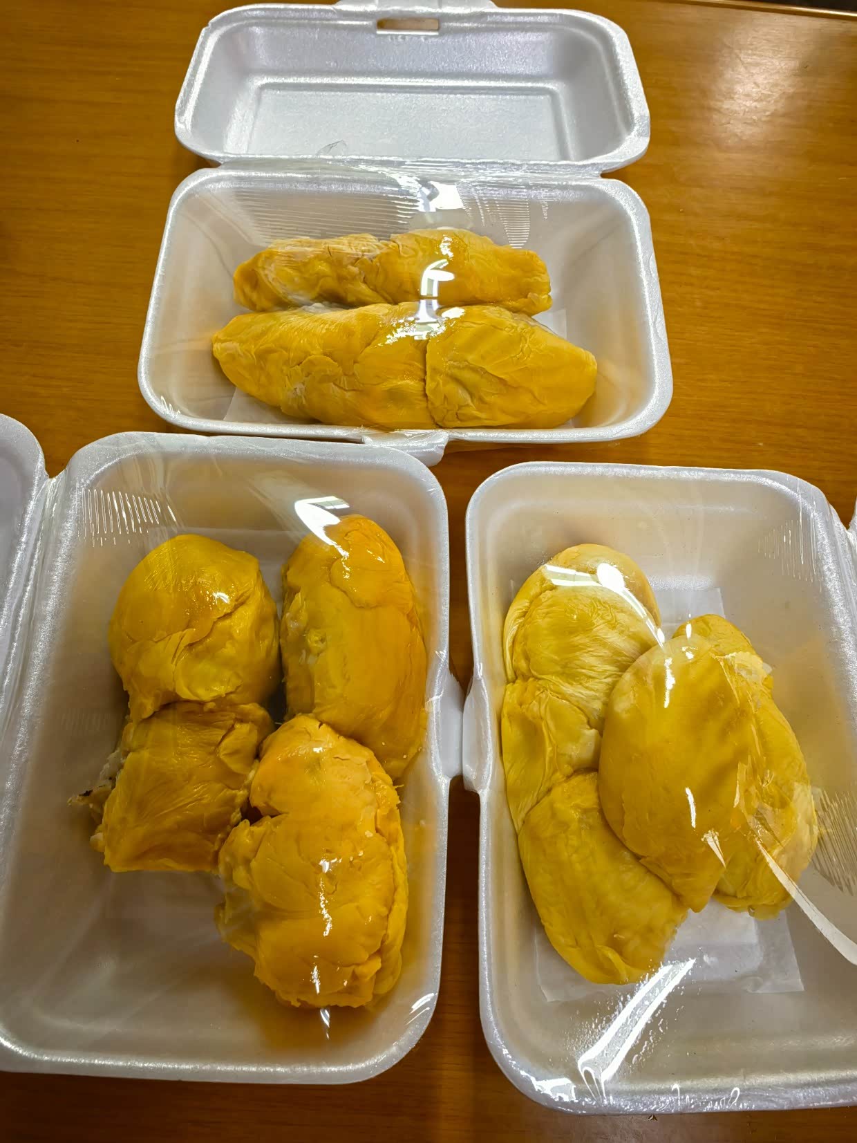 哈哈,终于让我赶上了,还好今天小雨,出来吃榴莲的人没有那么多,相对于价格质量不错,10新币要啥自行车