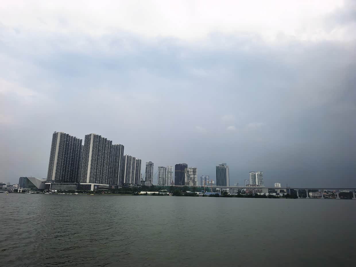 海河对岸就是马来西亚的新山,建筑都是新建没多长时间,左手边是关口桥梁,右手边是新建城铁,还未通车