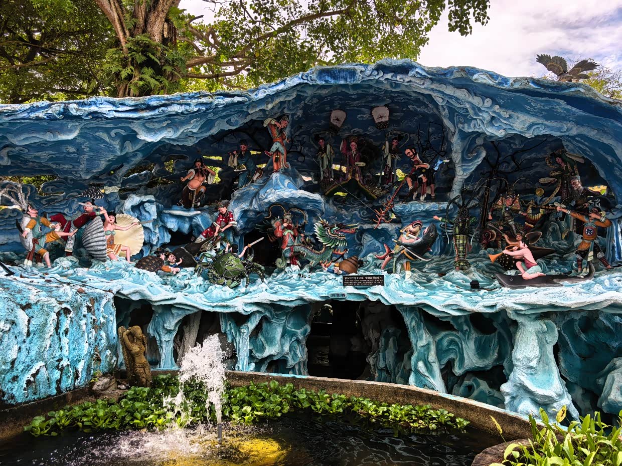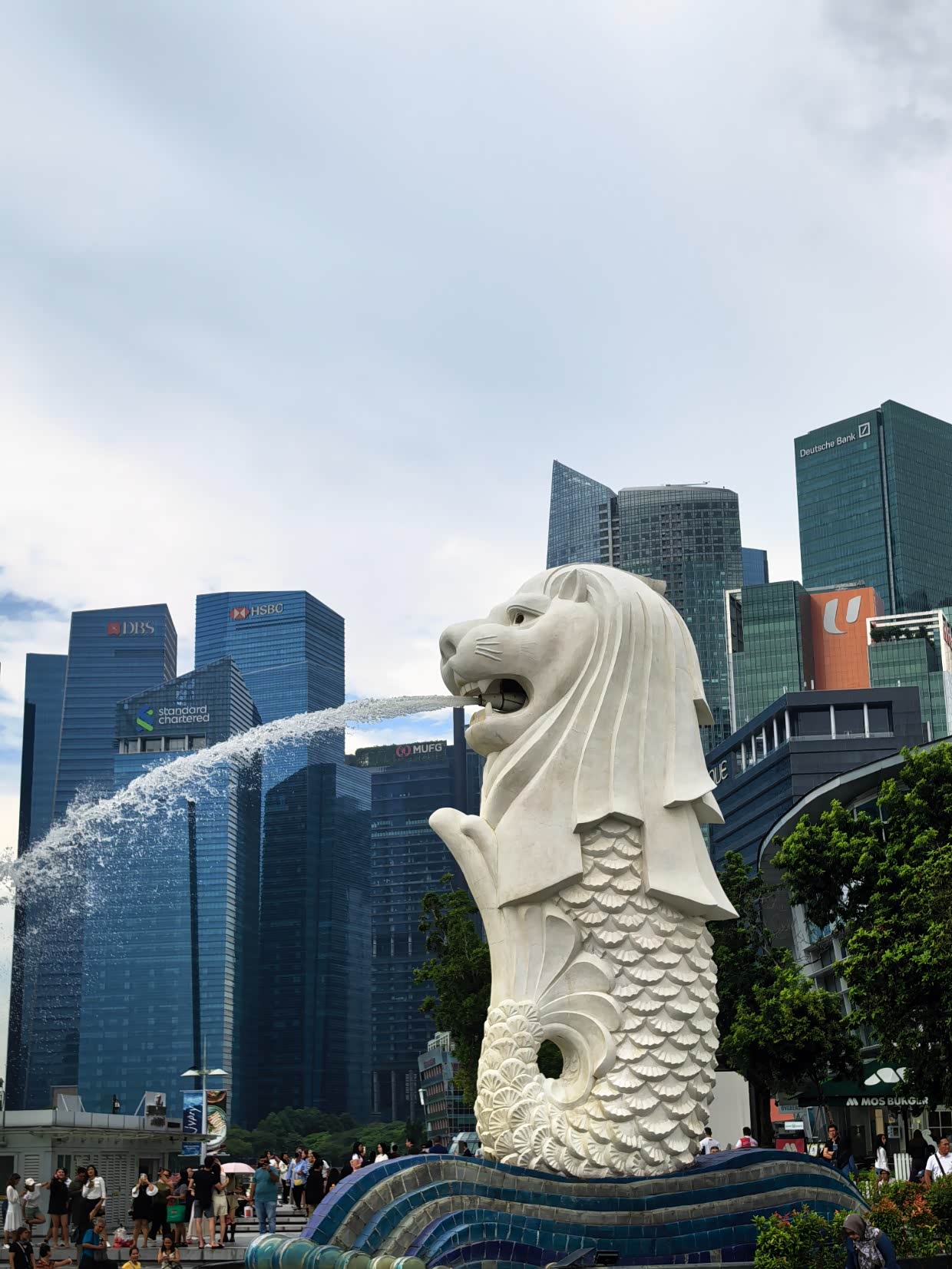 鱼尾狮雕像公园,新加坡面积最小的城市公园,雕像鱼尾象征新加坡渔村历史,狮头代表其古称狮城。
