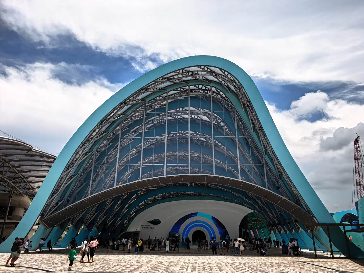 海的对岸就是圣淘沙道,左手能看到的就是新加坡海洋馆,边上就是环球影城,不大,很小。