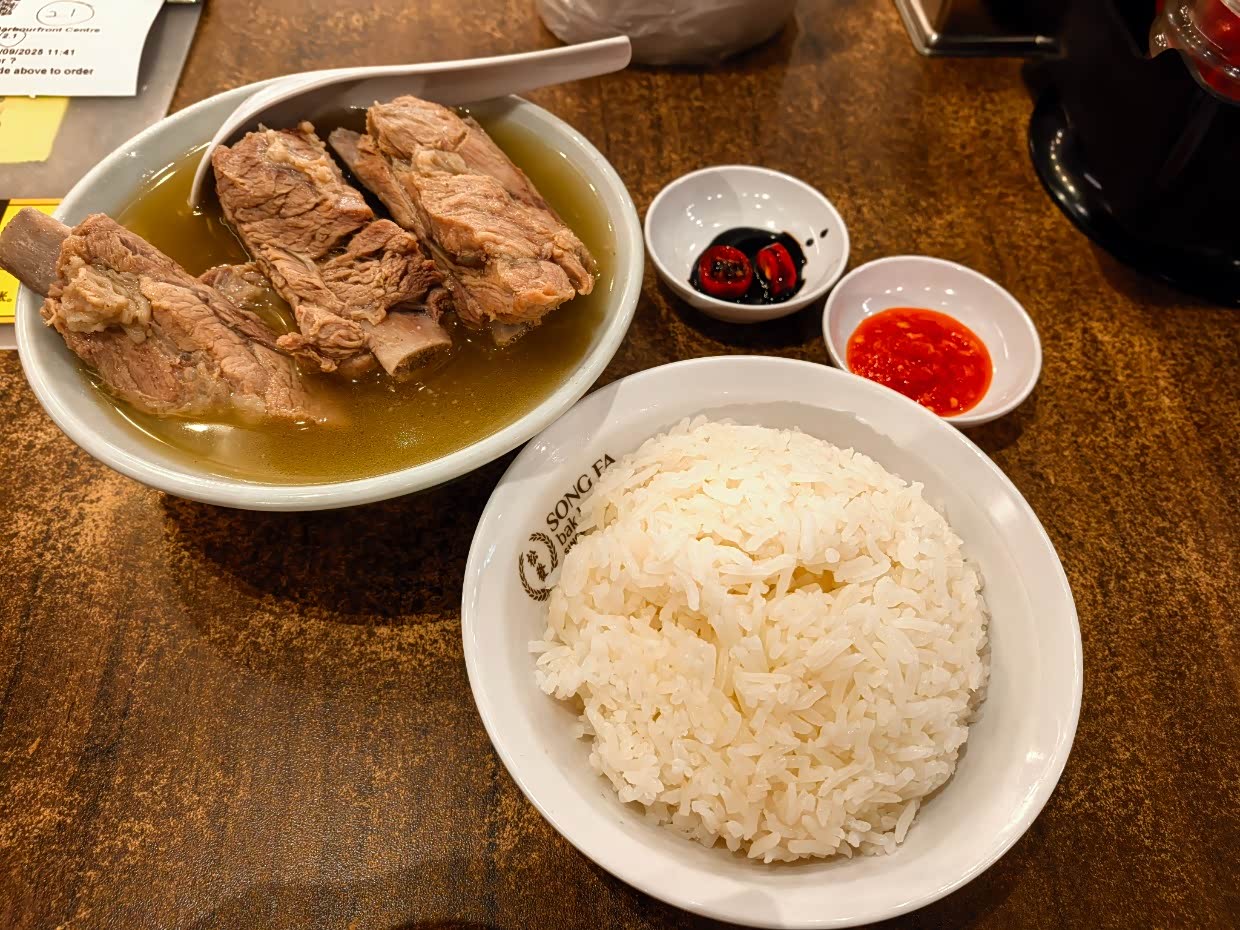 机智的我考虑上岛后物价高,还是在这头先把午饭吃了,松发肉骨茶,胡椒味没有黄亚细那么重,量很大