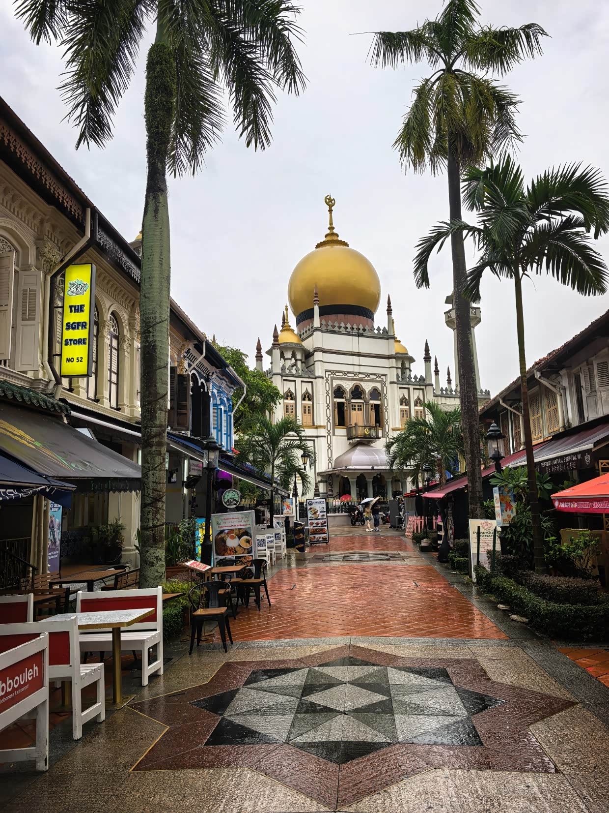 正对面就是苏丹回教堂的入口,进去也得拖鞋,穿短裤不行