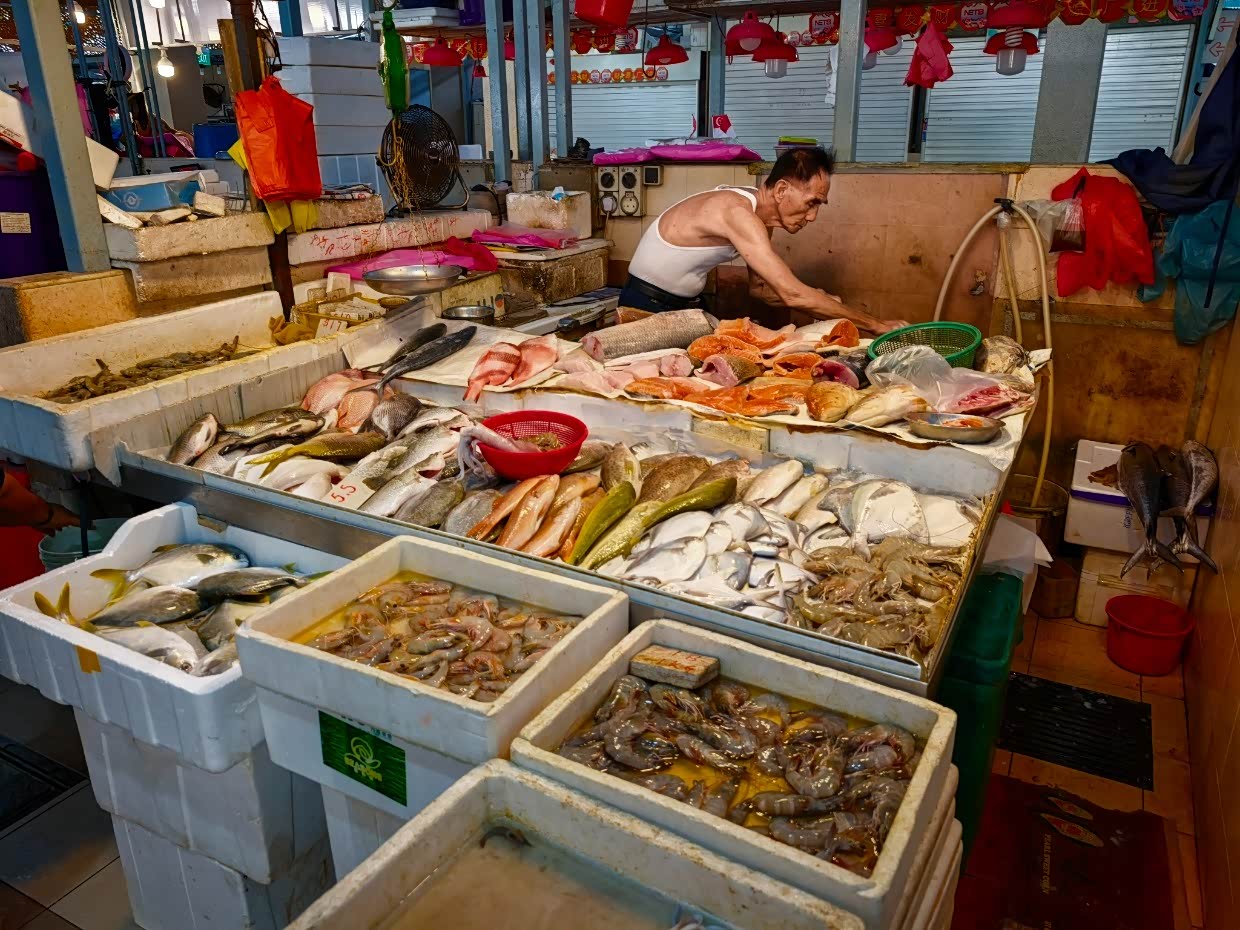 杀到黄埔小贩中心,离住宿的地方走路得2分钟,实在是太方便了,前头是卖菜卖海鲜的,后头一大片都是食阁