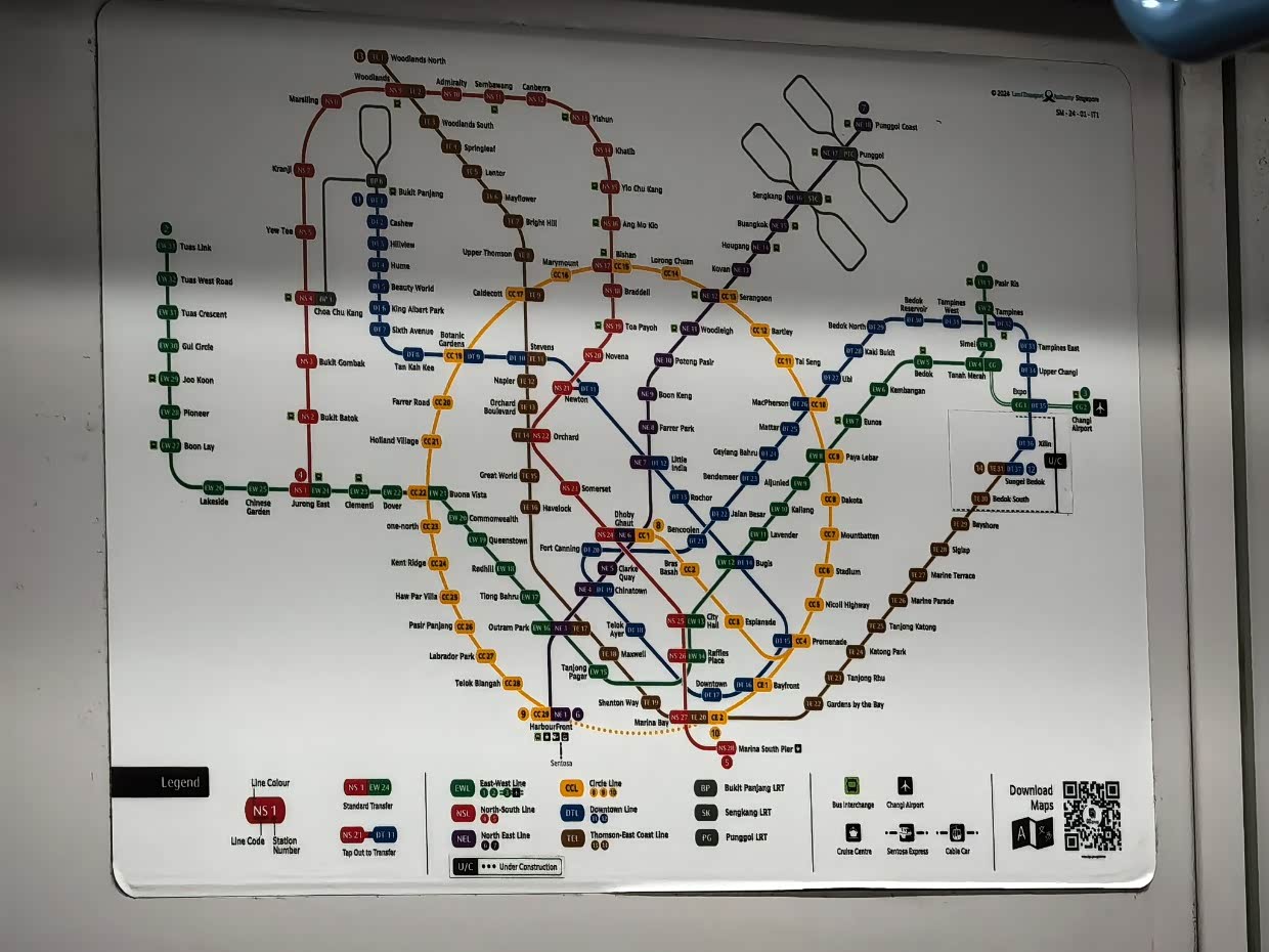 新加坡地铁图,右手边机场,下边是圣淘沙,左手边是南洋理工,左上就是兀兰海滨公园