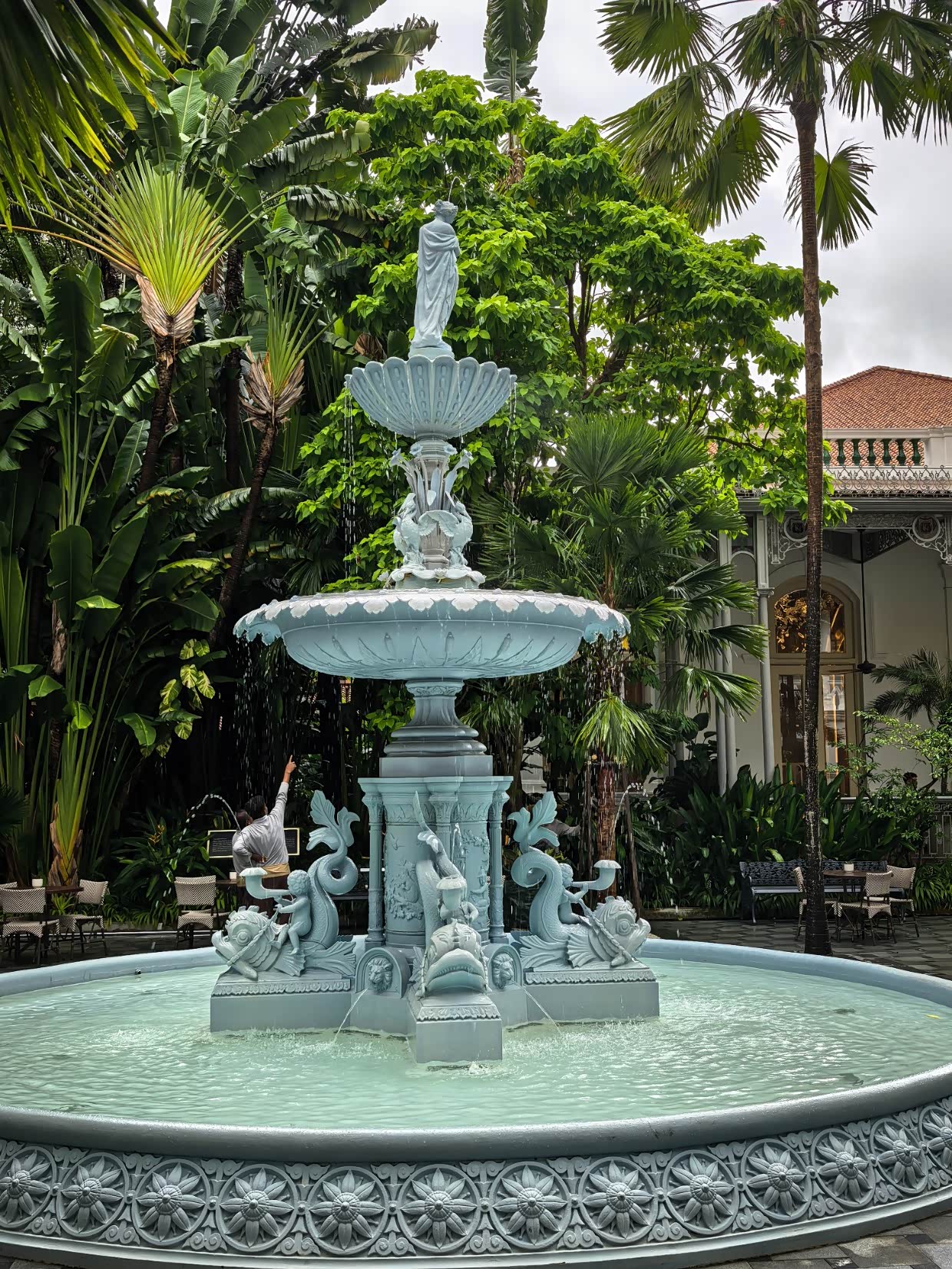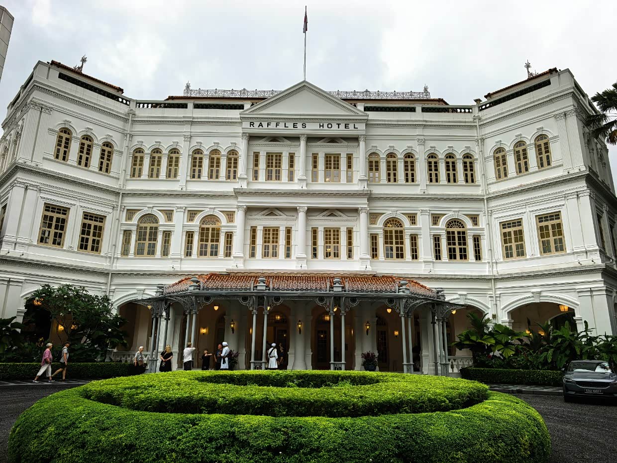 这就是莱福士酒店,是新加坡一家殖民风格五星级酒店,门口是印度人站岗