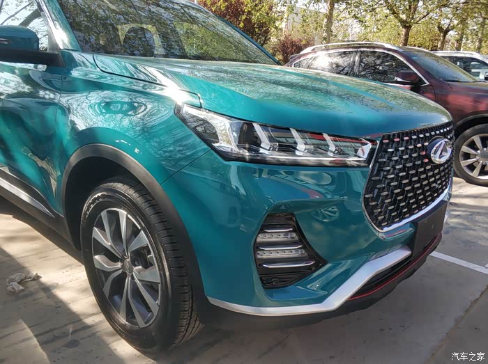 今天我们就来说说今天的主角奇瑞瑞虎七,它是最新改版的,首先它的外观就给人眼前一亮的感觉,碧玉一样的颜色,带给人的感觉是那么的高大上,极高档!前脸配备了星状镀晶格栅,是那么耀眼!有点高档车星途的样子。