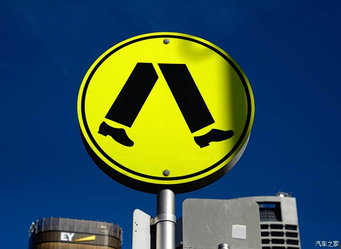 这个标志很形象。在国内的习惯还比较难改,在人行横道我还时不时地下意识礼让机动车呢。