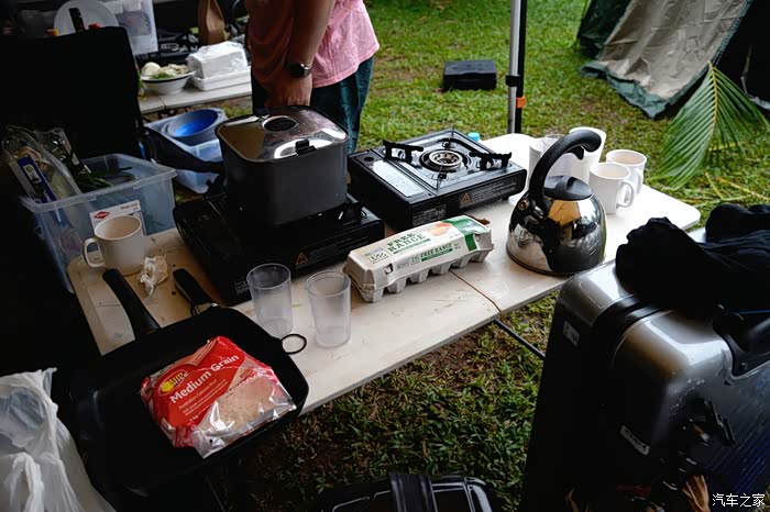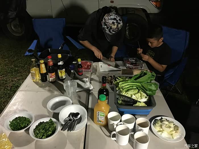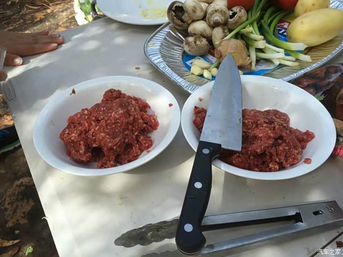 老爷子早早就开始忙活了,今天使用他的全套户外烧烤装备为我们烤串儿、煎牛排。