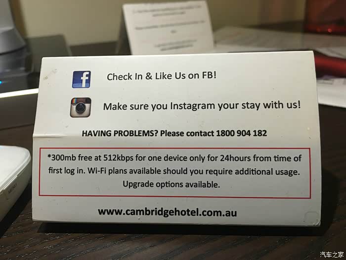 奔先生给我们拿来了现租的wifi--澳洲无线宝。时限14天,192澳元、每天限1G。我们几个人主要为了驾车出行时使用,在宾馆和好多公共场所都有wifi,虽然网速极慢。你要到澳大利亚旅行、特别是到地广人稀的偏远些地方自驾游,要有充分的思想准备,就别寄希望有什么网啦,想发个朋友圈显摆一把你想都别想。