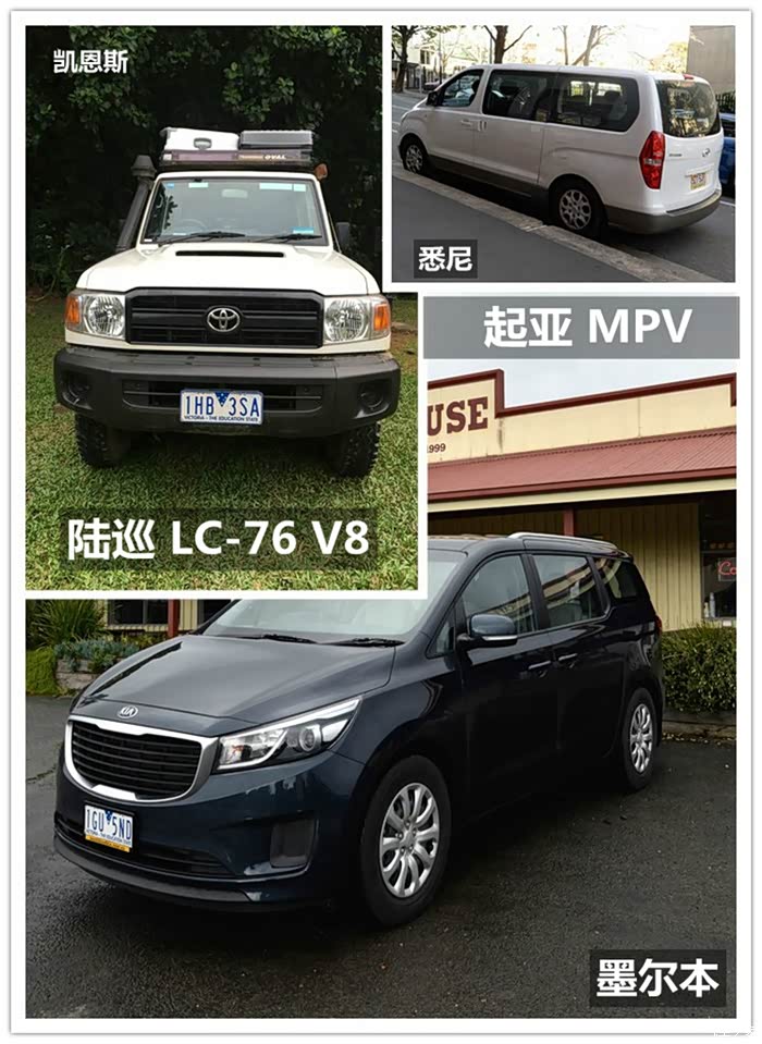 这是我们分别在悉尼、凯恩斯和墨尔本租的车。