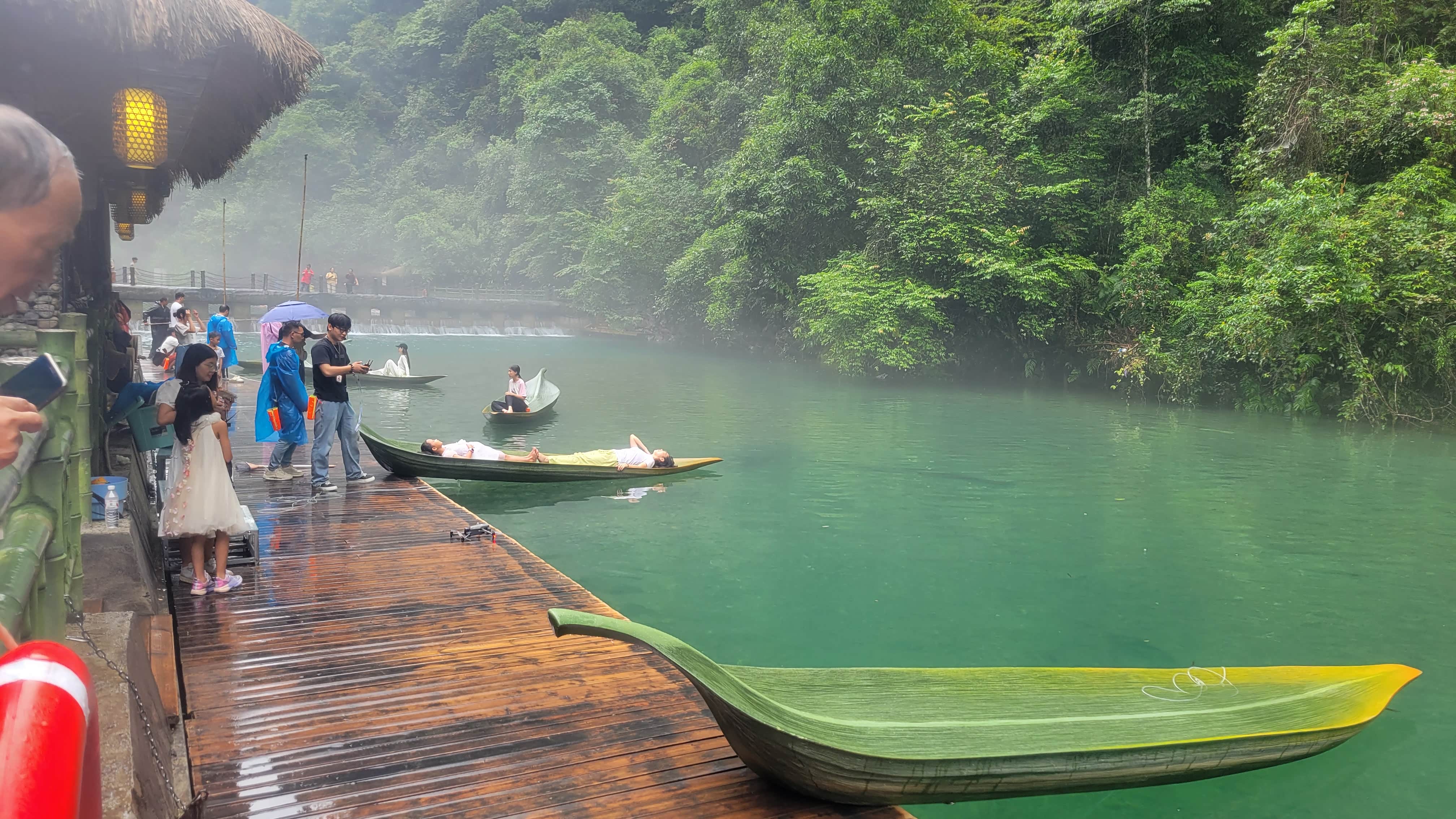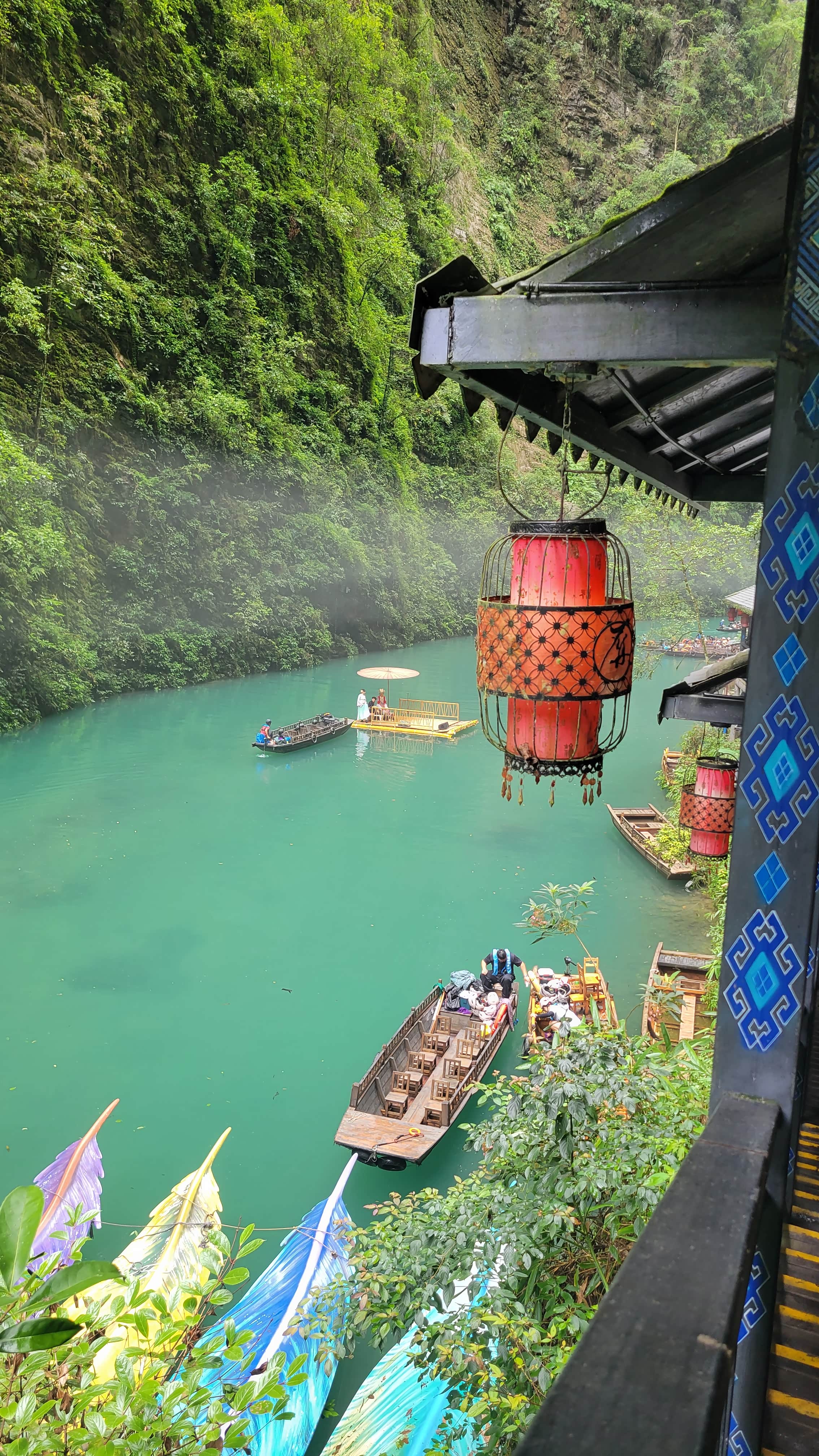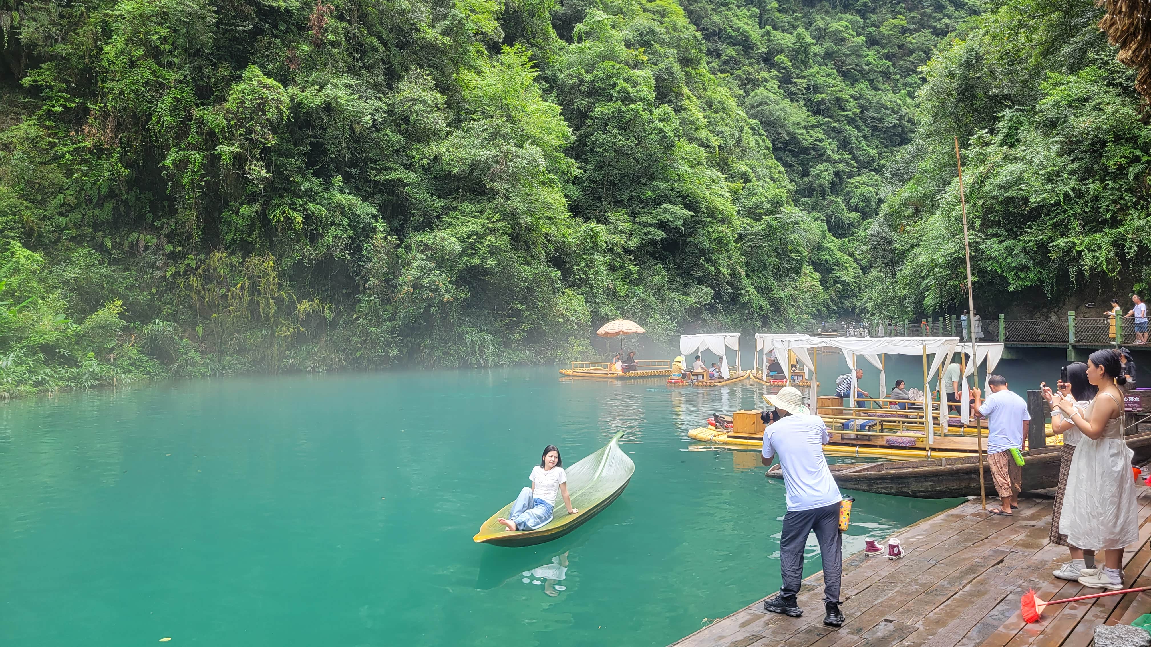 坐上悬浮船,悠悠荡荡于碧波之上,船身轻晃,似在空中飘游。抬手轻触,水波温柔;举目四望,山色如画。随手按下快门,每一张照片都定格成了绝美大片,将这如梦似幻的仙境永远珍藏。