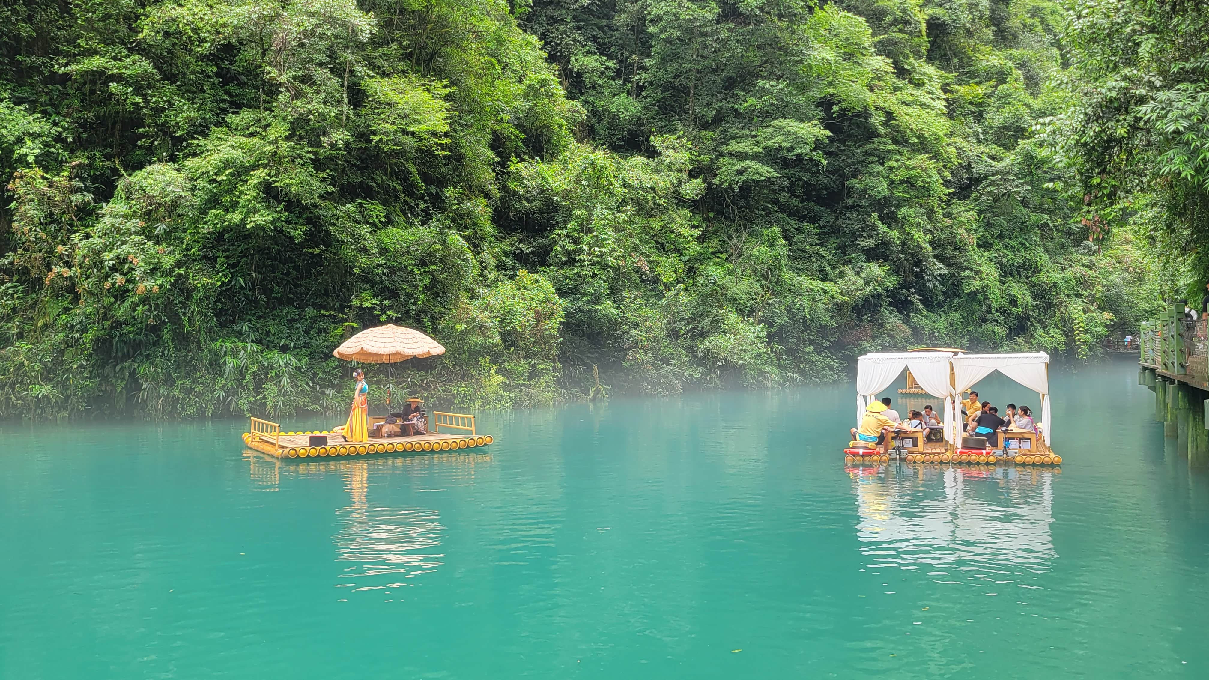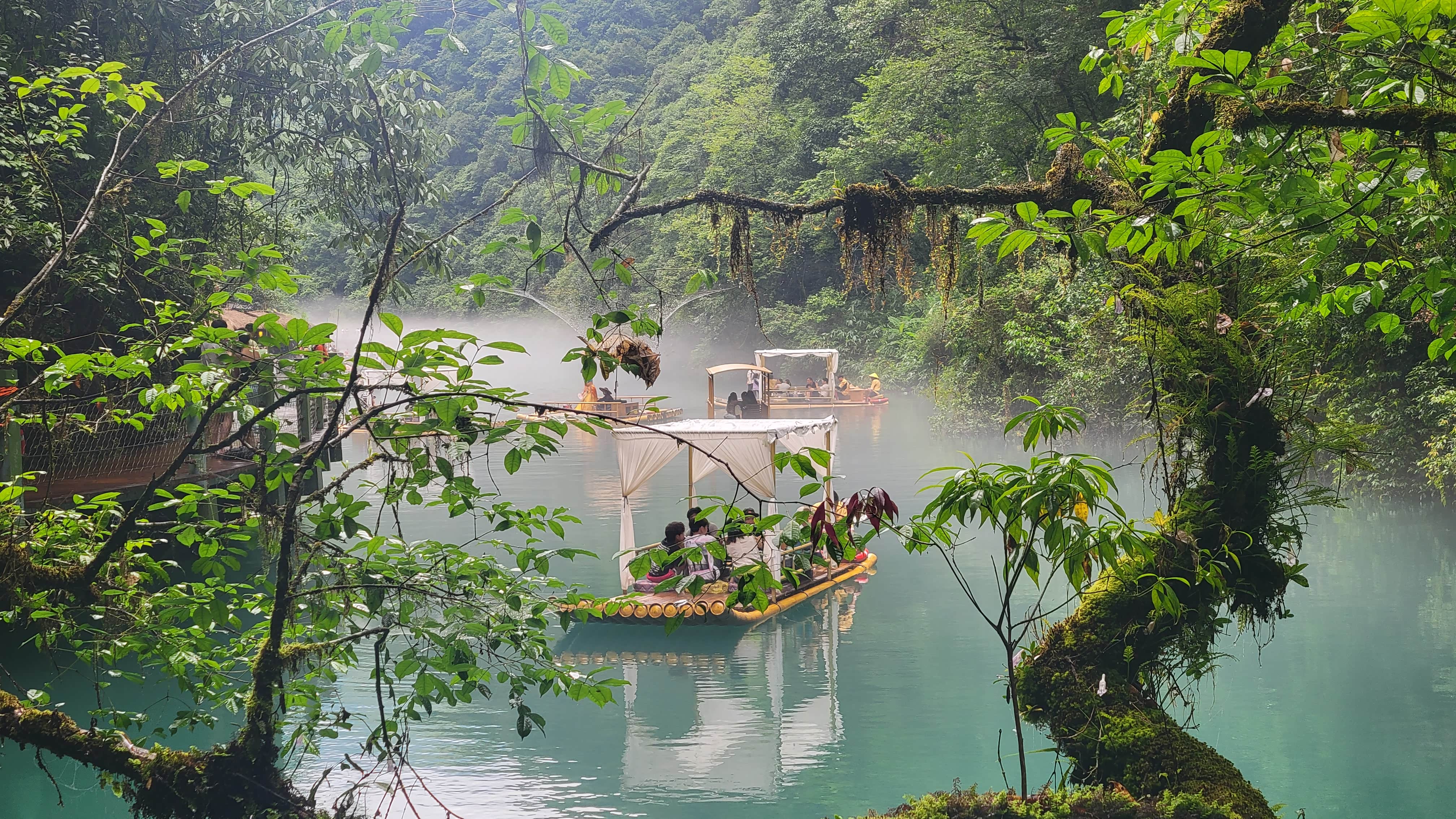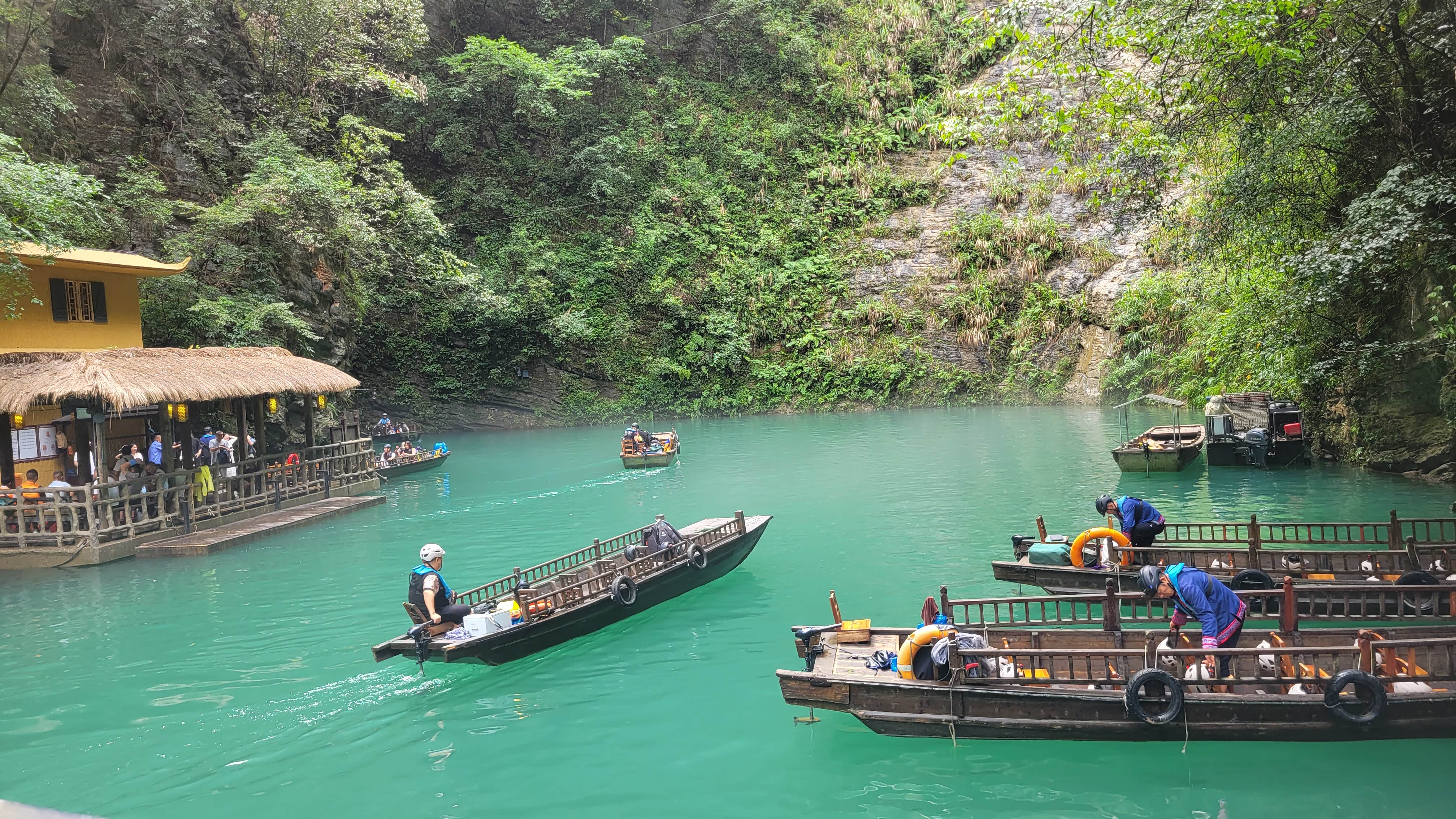 坐上悬浮船,悠悠荡荡于碧波之上,船身轻晃,似在空中飘游。抬手轻触,水波温柔;举目四望,山色如画。随手按下快门,每一张照片都定格成了绝美大片,将这如梦似幻的仙境永远珍藏。