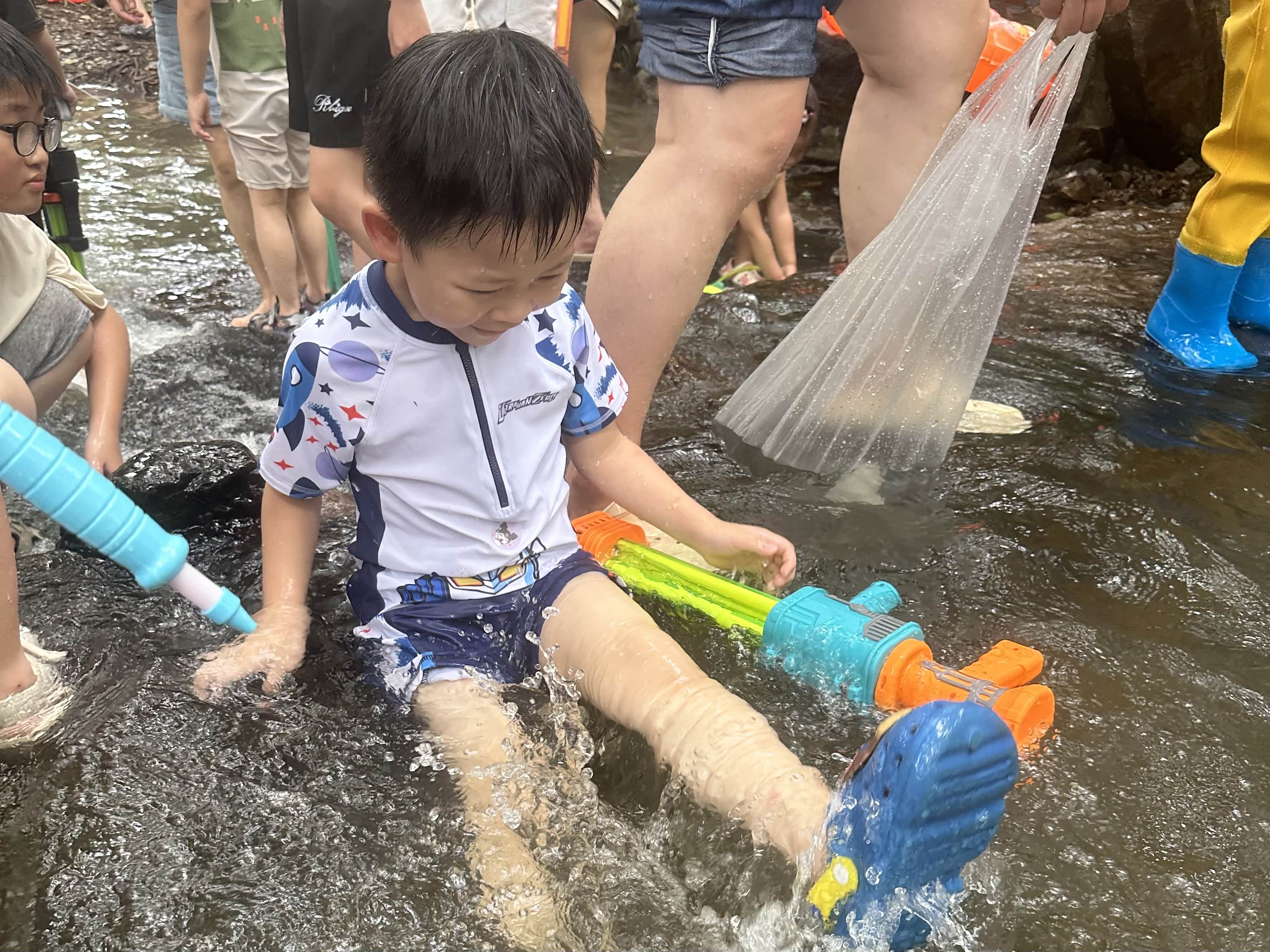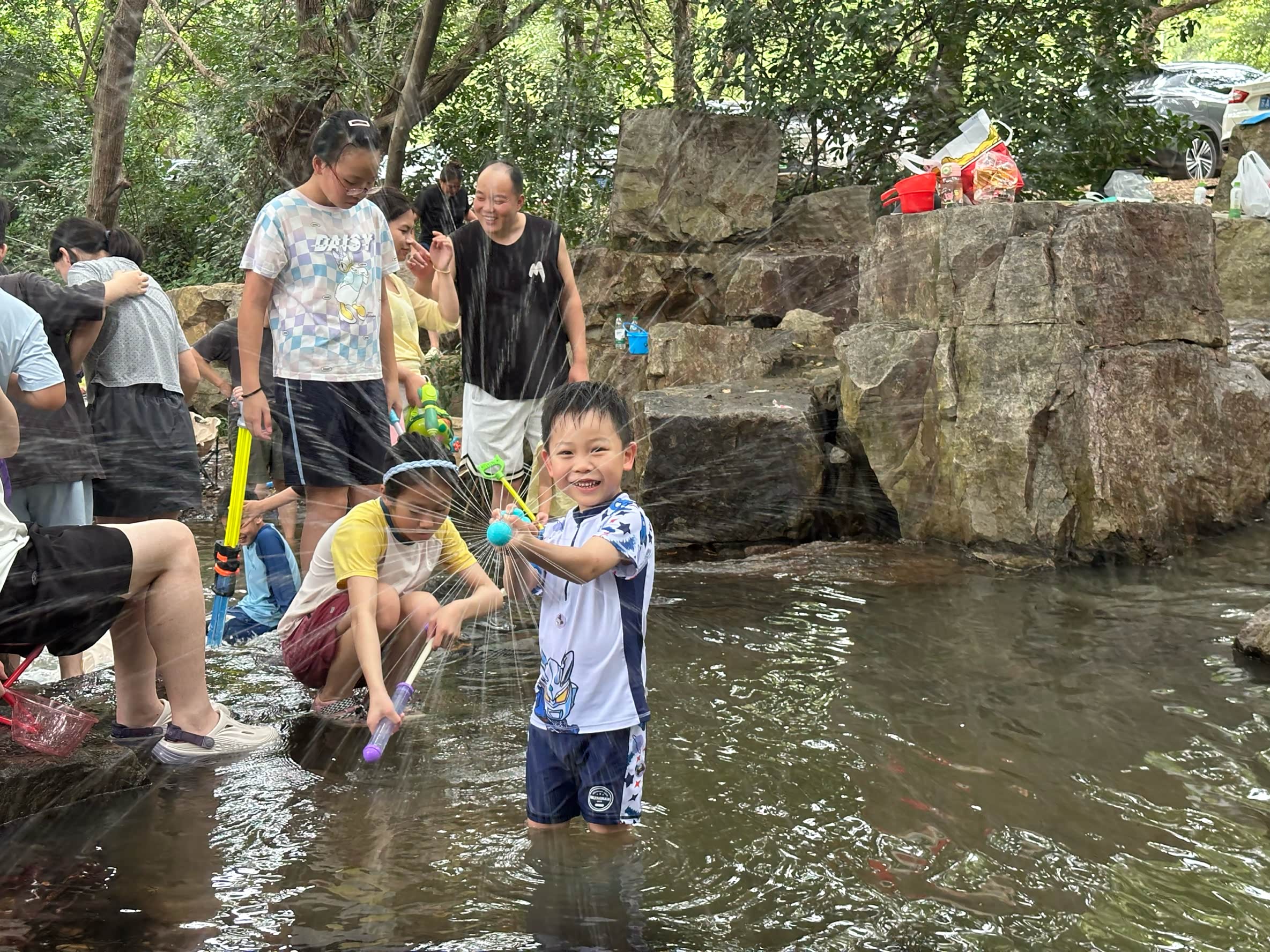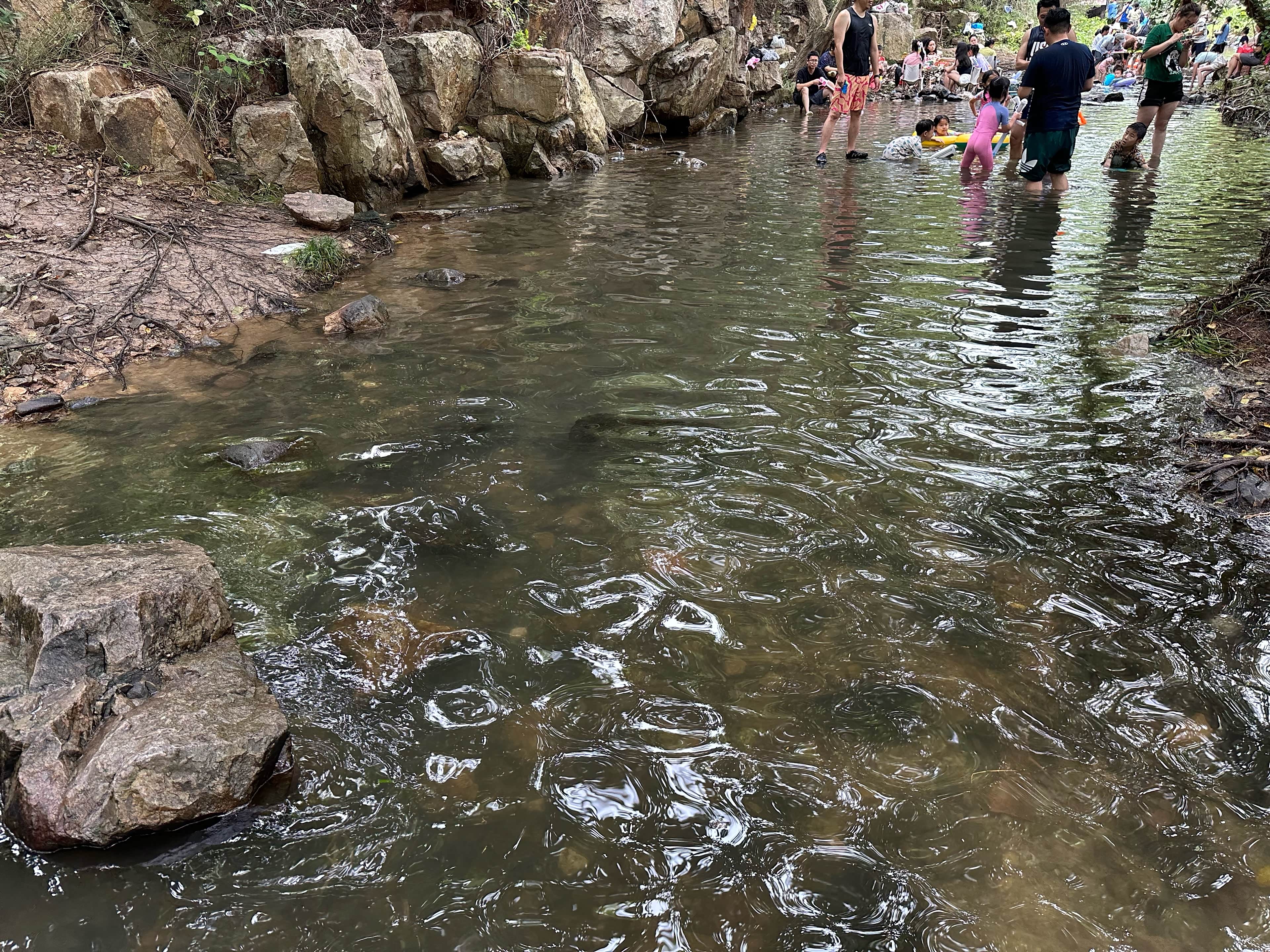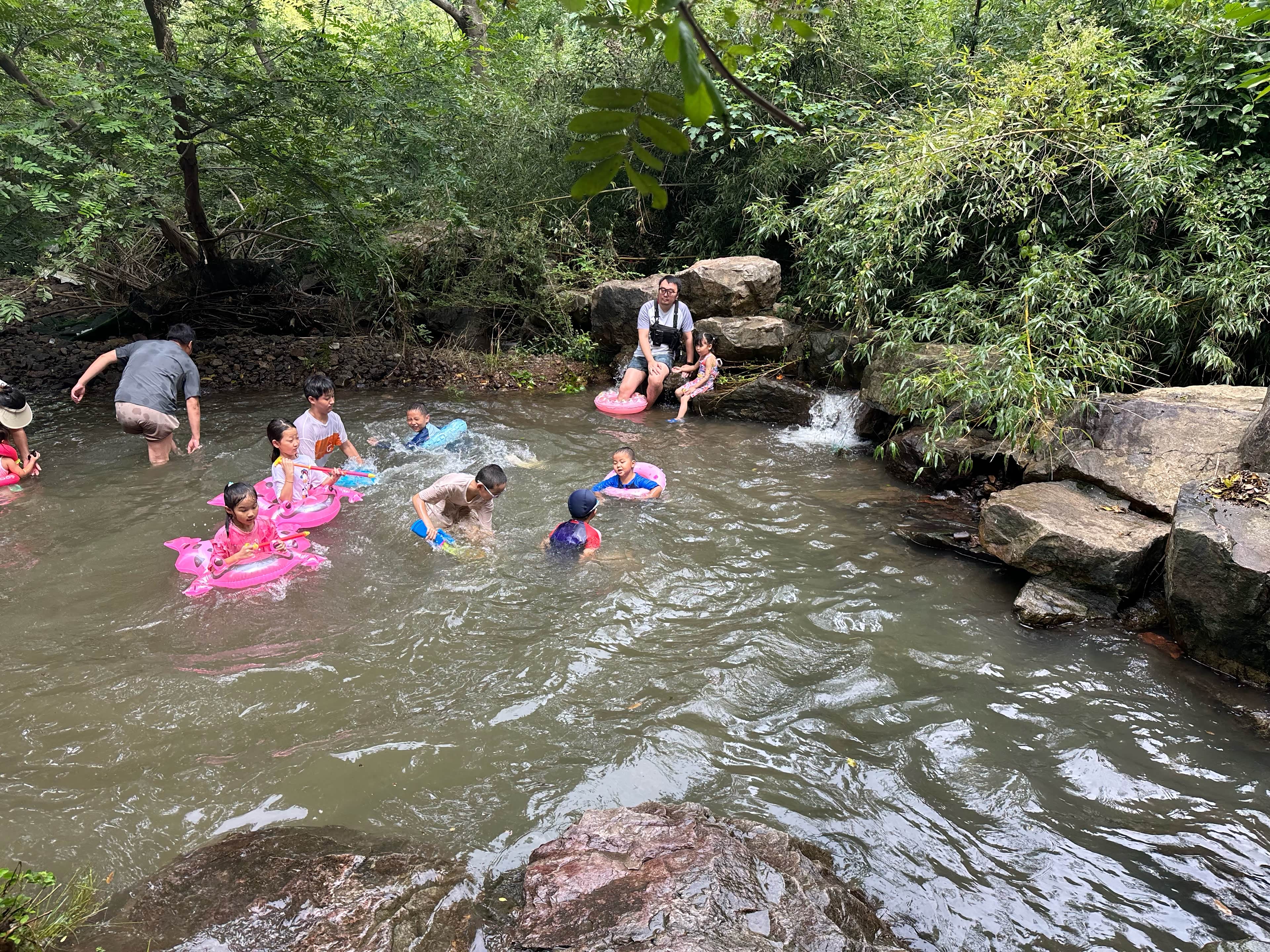 随着人逐渐多了起来,溯溪玩水也变得热闹起来。我家儿子虽然还不会游泳,但早就在车里换好了泳衣,一走进水中就玩得不亦乐乎。对于城市孩子来说,走出空调房走进大自然还是很有必要的。汗水夹杂着溪水,在山野溪水间嬉戏玩耍也是夏天的一大乐趣。