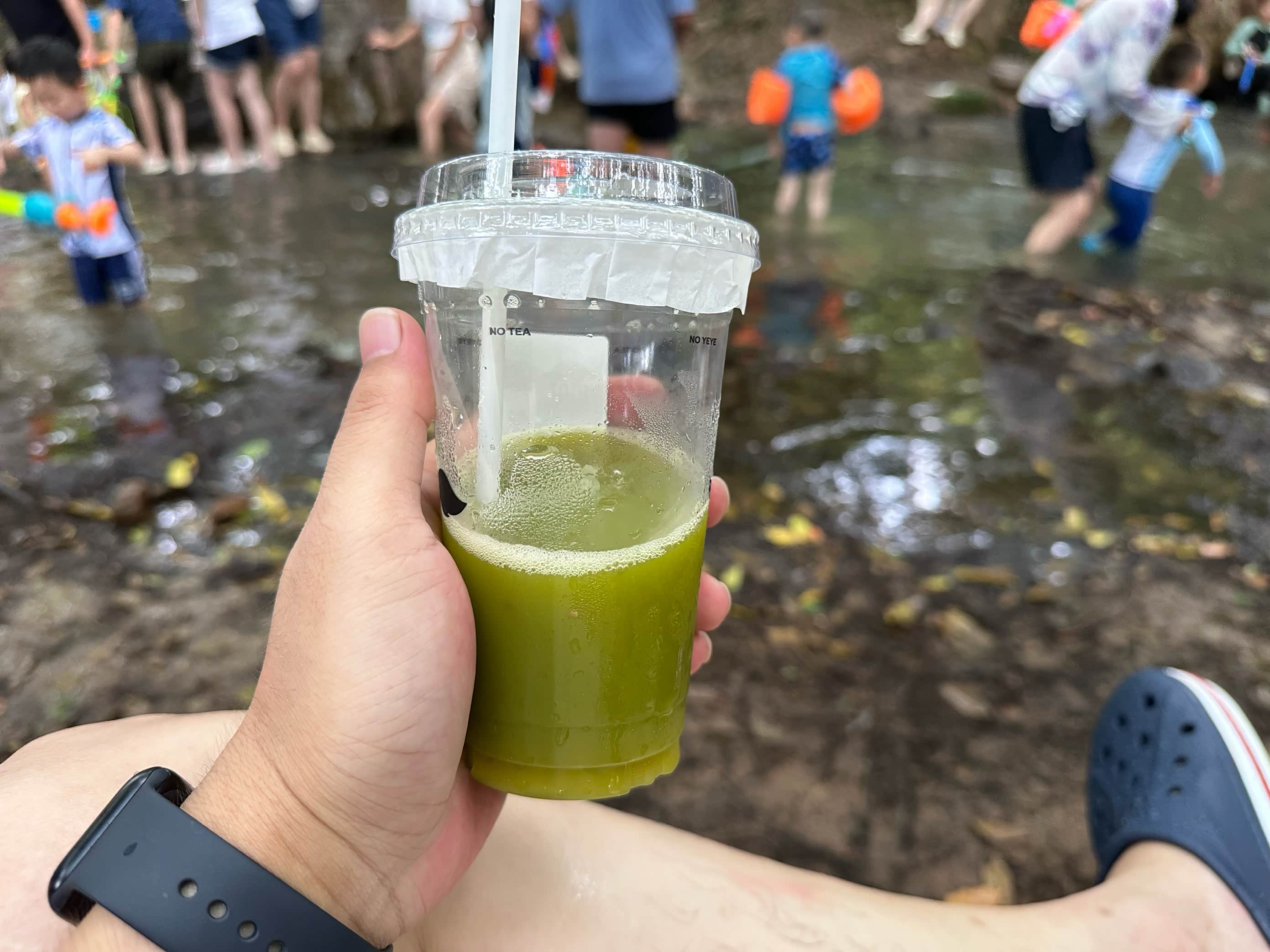 这是在竹海风景区旁边的一条小溪流,可以导航竹缘酒楼对面就是,也算是个网红溯溪地。我们到达的时候已经有不少人已经在此安营扎寨了。于是赶紧找了块领地把露营装备布置好。忙了一阵终于布置妥当,于是坐在树荫下溪水边喝饮料休息一会。