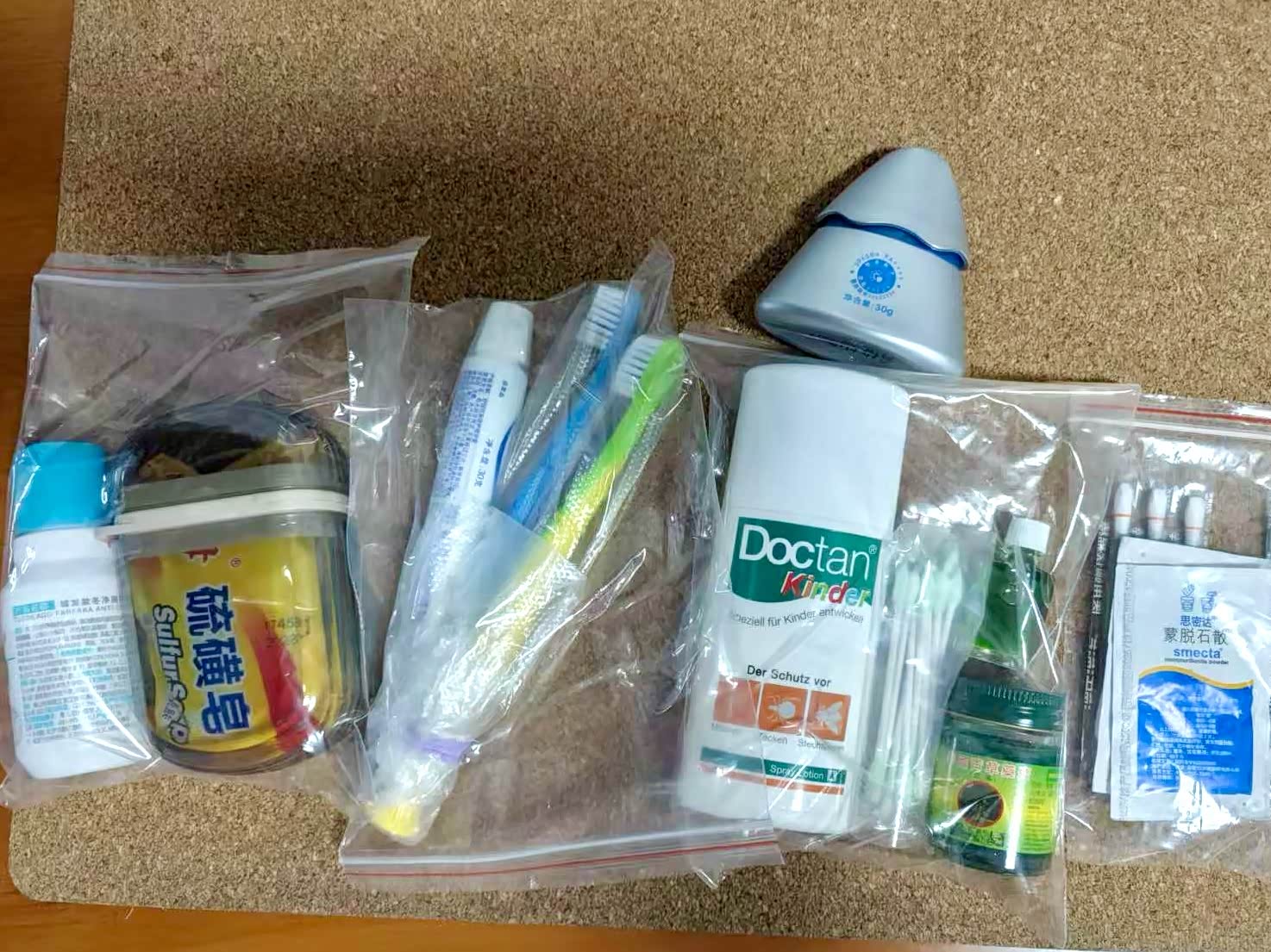 另外野外溯溪也不要忘了防晒防虫和洗漱杀菌用品。防晒霜、防蚊液、风油精、硫磺皂等等我也都带上了。