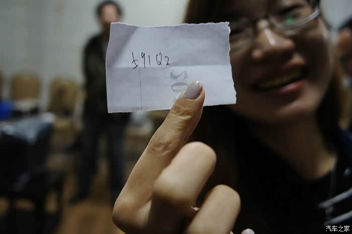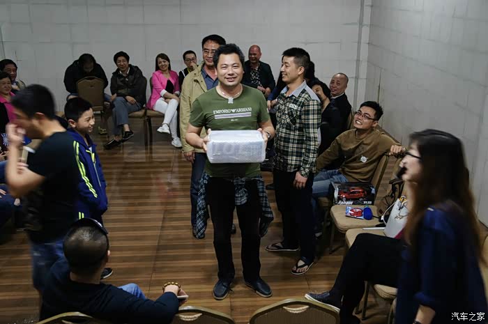 第一个游戏是记忆环节,所有活动人员围成一圈,其中6名自愿参与的车友上台,站在中间,所有车友按顺序报一遍自己的车牌号以及姓名,比如“我是JO,闽A3495X”,参与者尽量记住大家的车牌号以及姓名,紧接着主持对6名车友提出要求,请站在车主XX的面前,并说出他的车牌号,或者请站在车牌号XXXX的车主面前,并说出他的姓名。