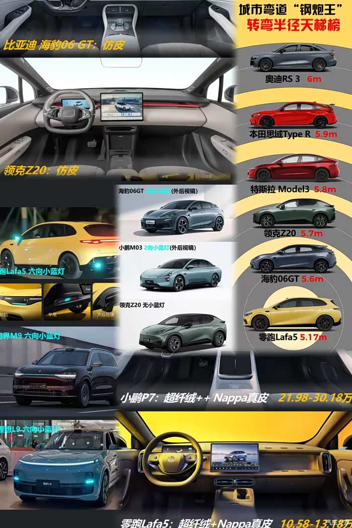 颜值不输:10 万级做到这份上,很难不心动全系无框车门+纯平侧窗,直接把C系和D系同款高级感拉满;19英寸黑色大轮毂标配,看着就很有运动味,精致度也高,有点 P7、007GT、ET5那味儿了。一句话:10 万级里,Lafa5的整体质感属于“不讲武德”。