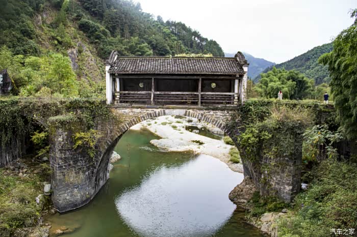 一座跨越时空的古廊桥(淙潭桥)横跨在夹溪河上。