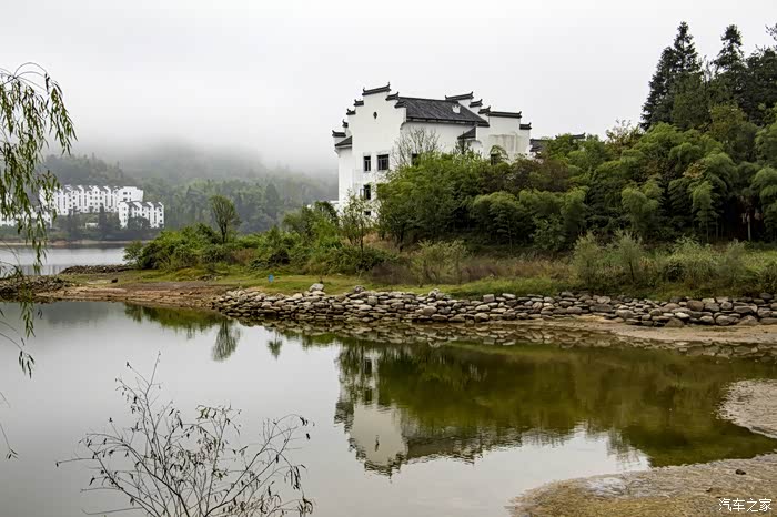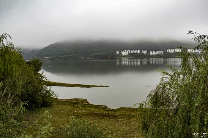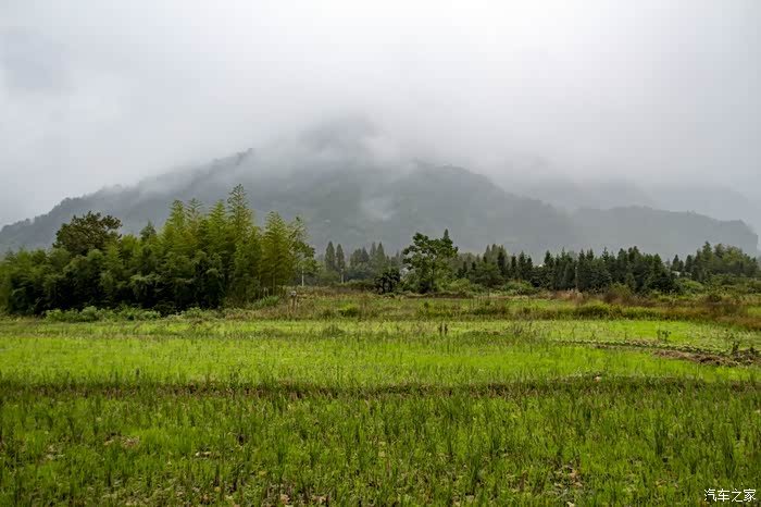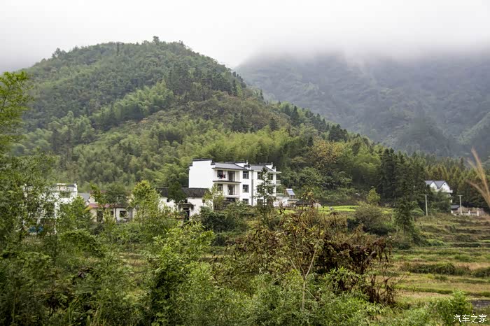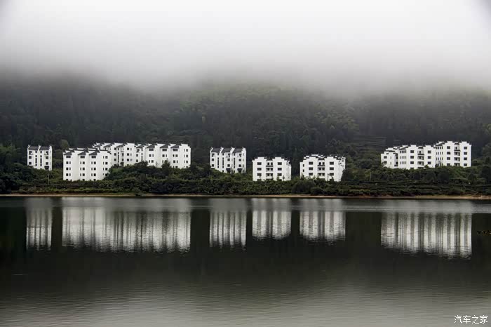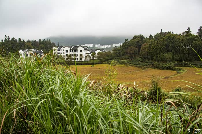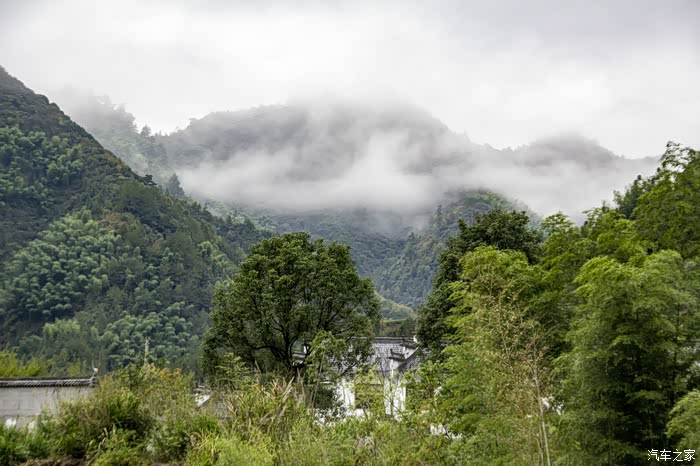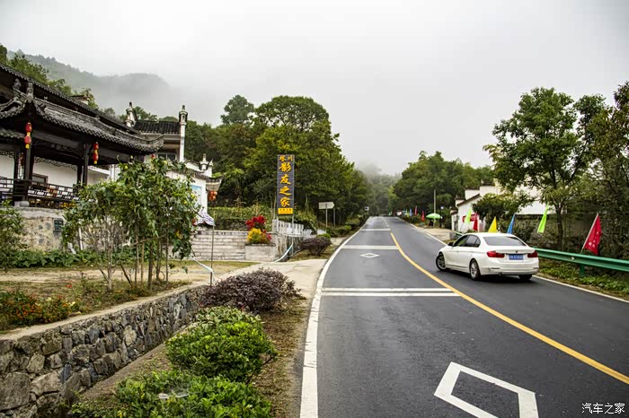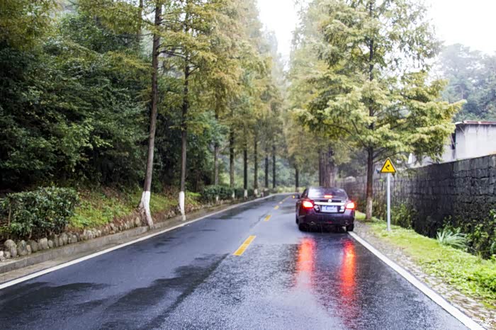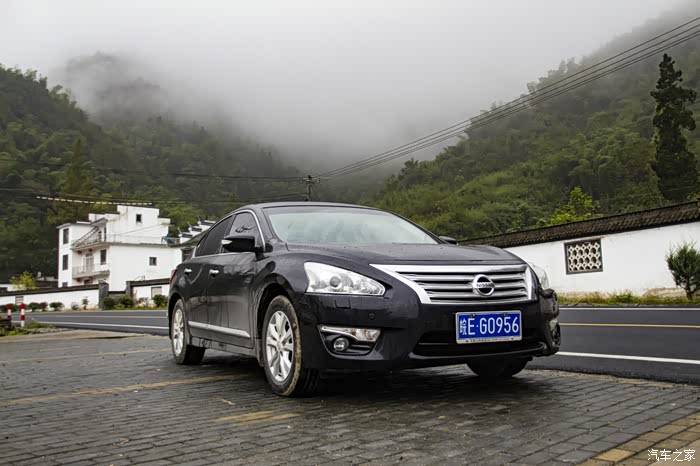 濛濛细雨中的东风日产天籁,在云雾、徽居的衬托下,显得格外雅致。
