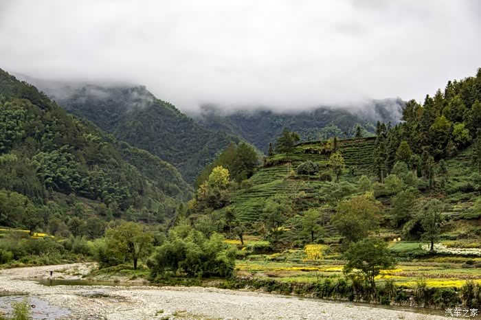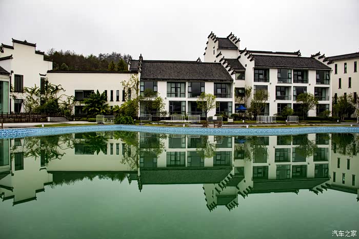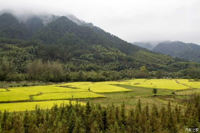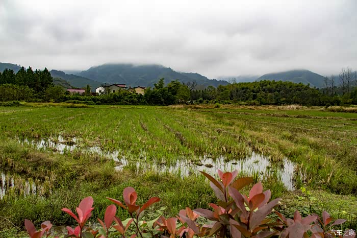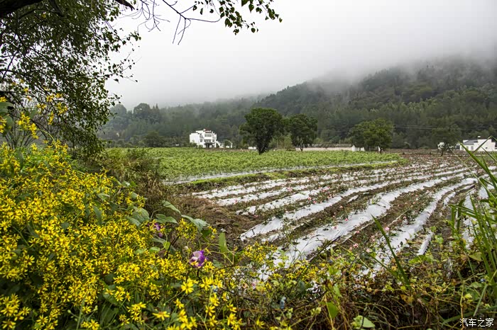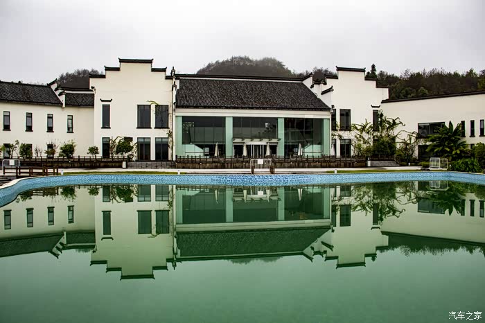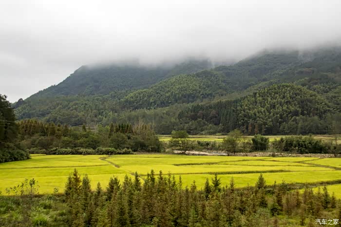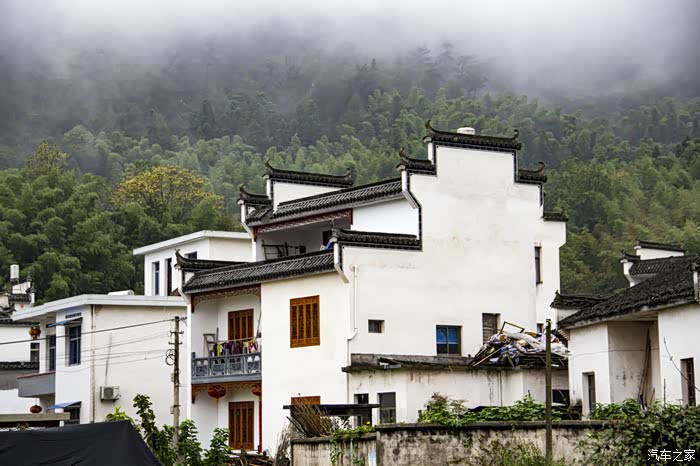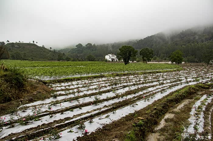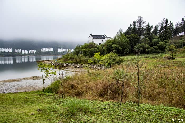 濛濛细雨中的东风日产天籁,在云雾、徽居的衬托下,显得格外雅致。