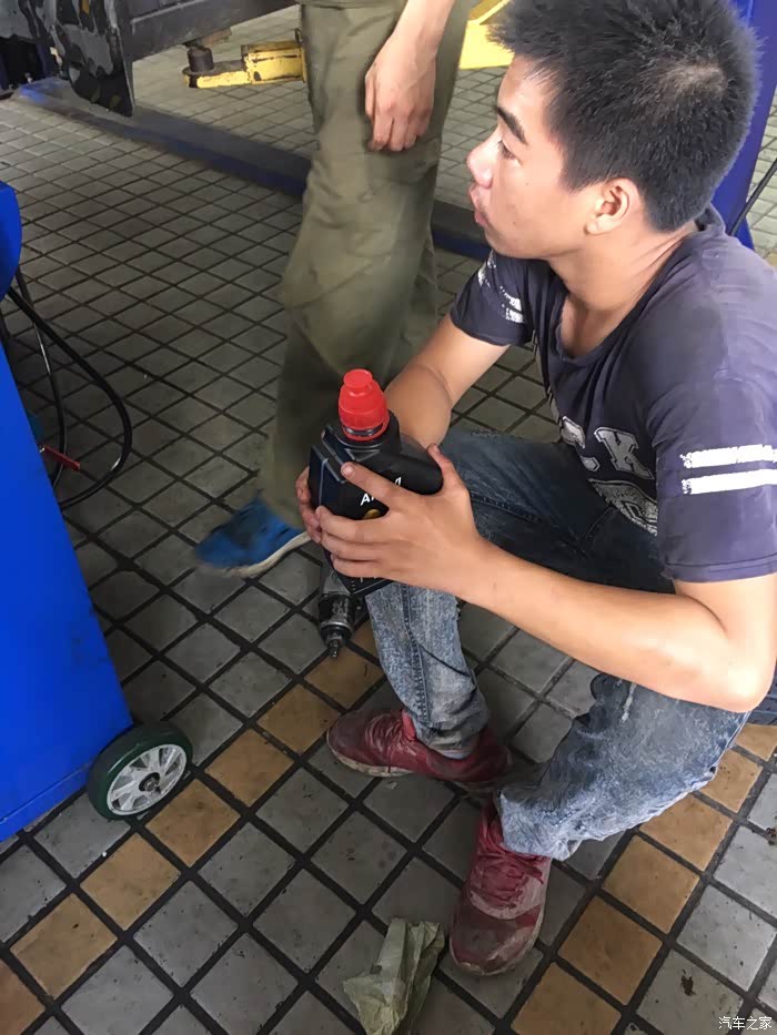 换油完毕。。。。师傅正在细心的将漏出来得油清洗干净。很贴心的服务。这里赞一个