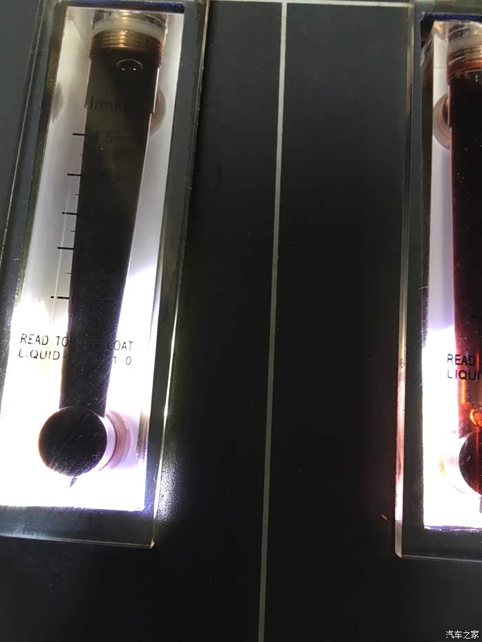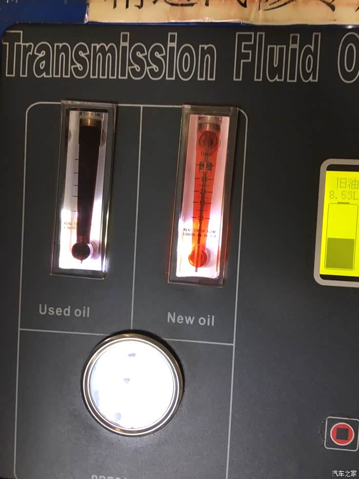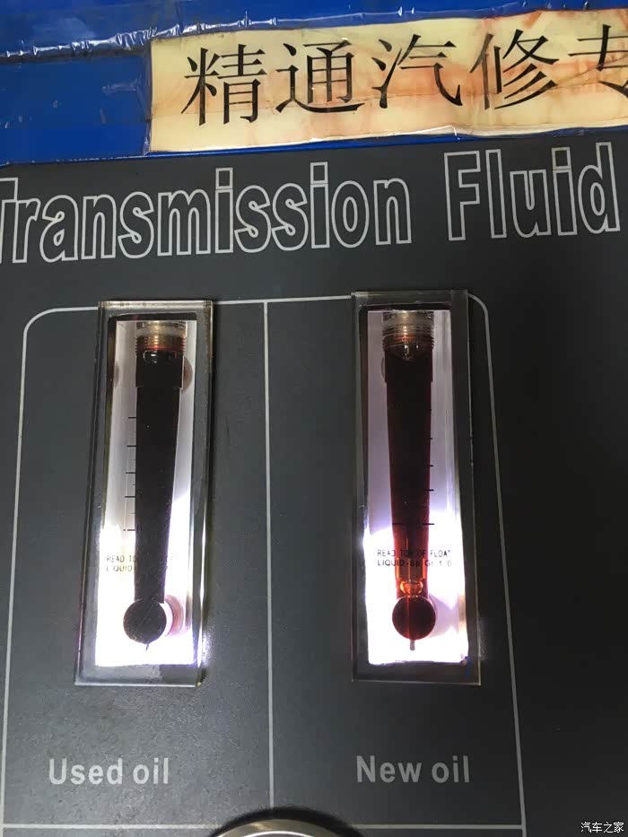 换油完毕,上图浅色的是没有加注到车上的新油,下图颜色较深的是刚加到变速箱内的油。