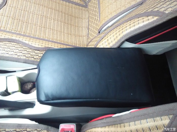 扶手箱套是买坐垫的时候赠送的,不太合适,我把下面松紧带减掉了,然后把扶手箱上面的塑料盖子拆开,一共六跟螺丝,很容易拆,然后把皮子塞进去按紧,然后把螺丝上到原位就算完工了,主要是感觉这种皮革质量不错,用手指甲用劲划都不会有一丝划痕。所以就想办法给利用了。